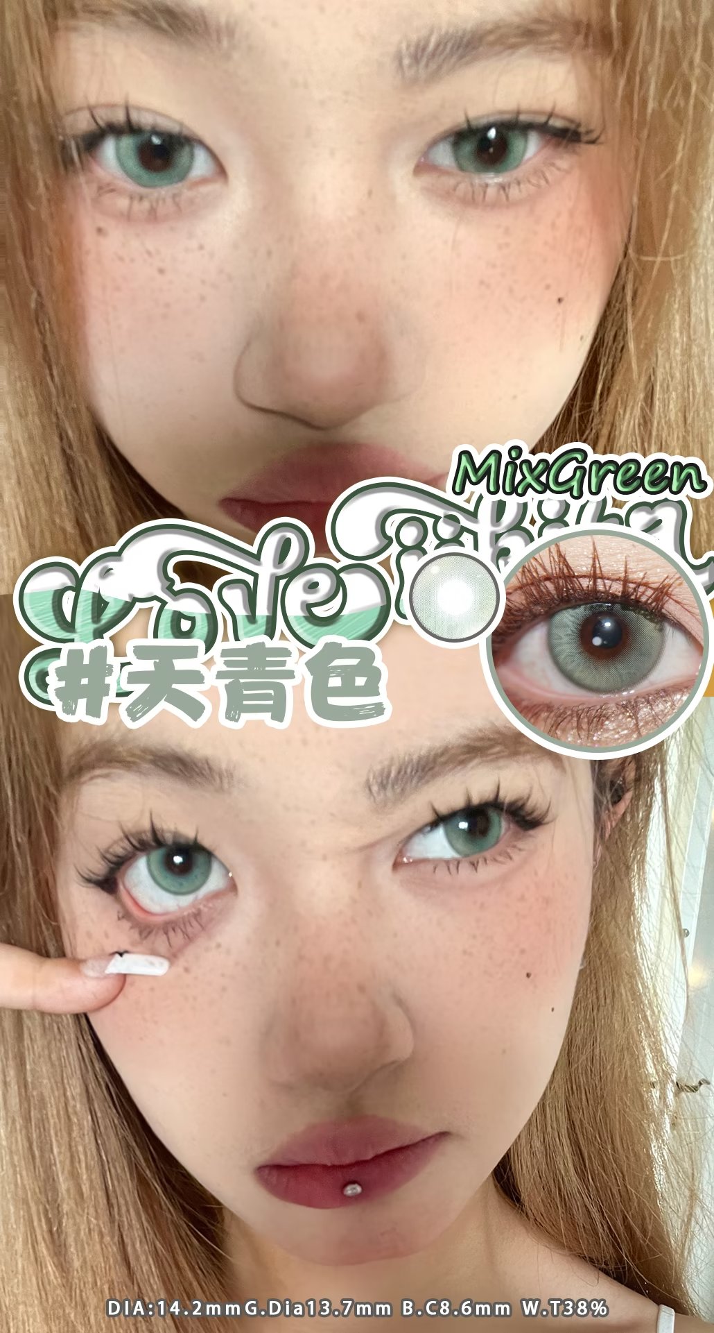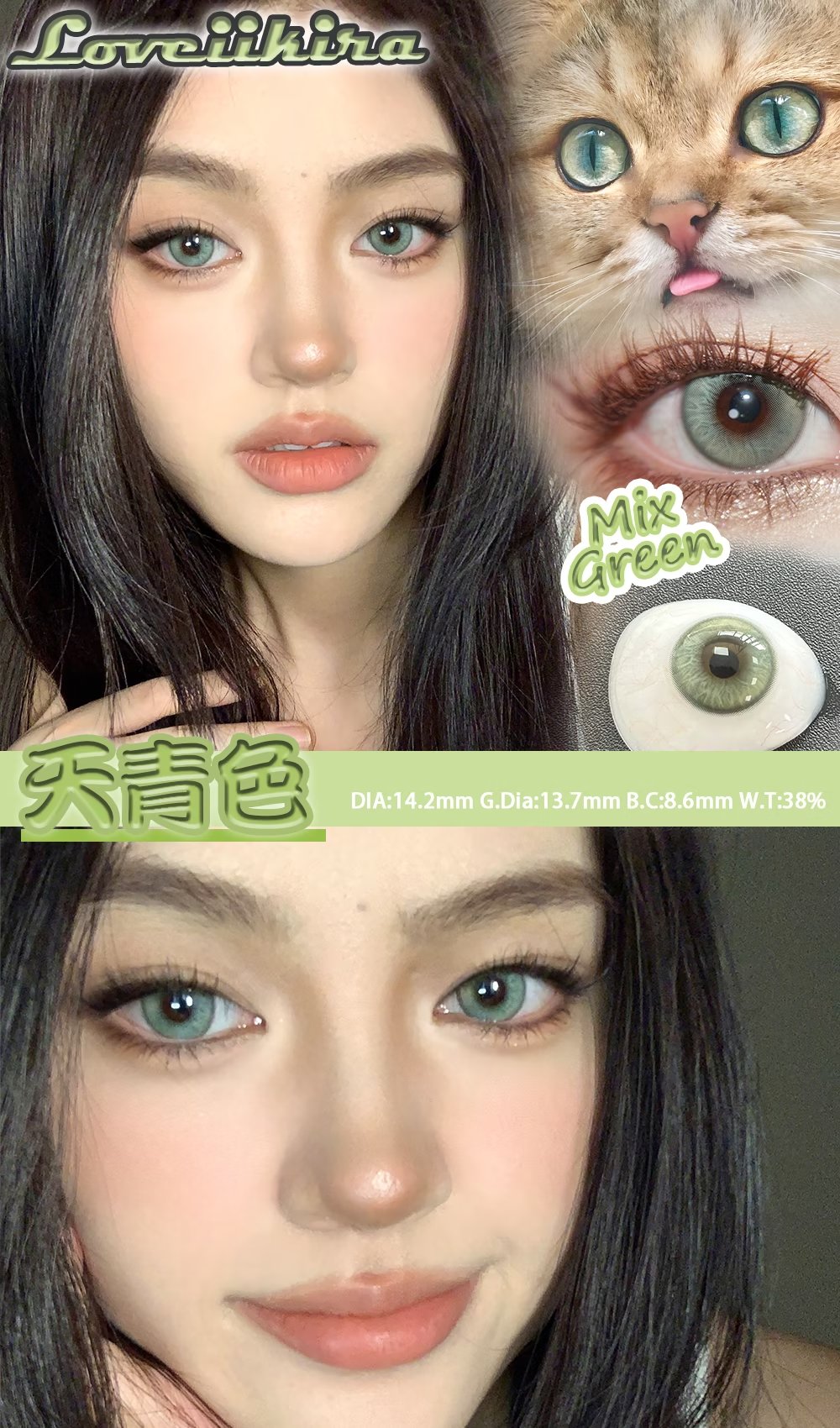 艾吉拉Loveiikira 天青色 半年抛 两片 14.2mm 参考着色 13.7mm 基弧 8.6 含水 38%新锐国货