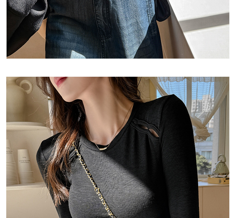 早秋新款设计感韩系简约打底衫女内搭秋冬高级感修身短款上衣正肩长袖t恤