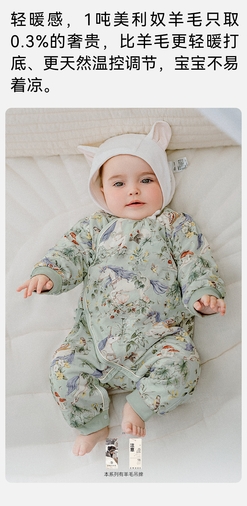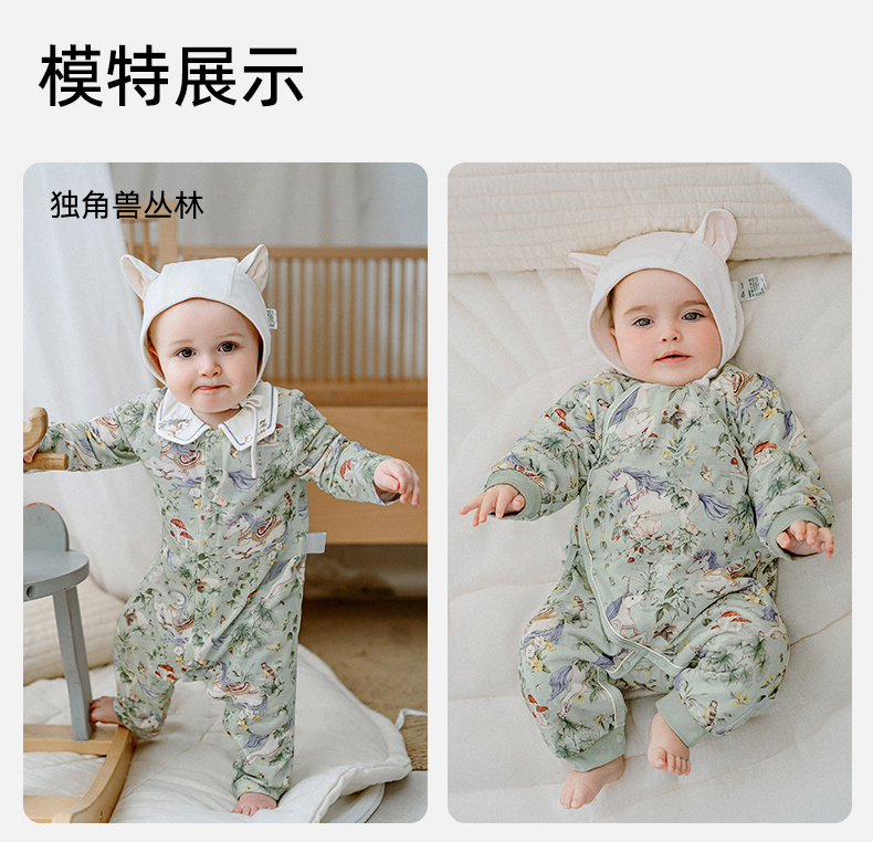 【宝宝服饰】嫚熙天丝羊毛棉宝宝连体衣秋冬季新款男女宝新生儿儿童衣服套装