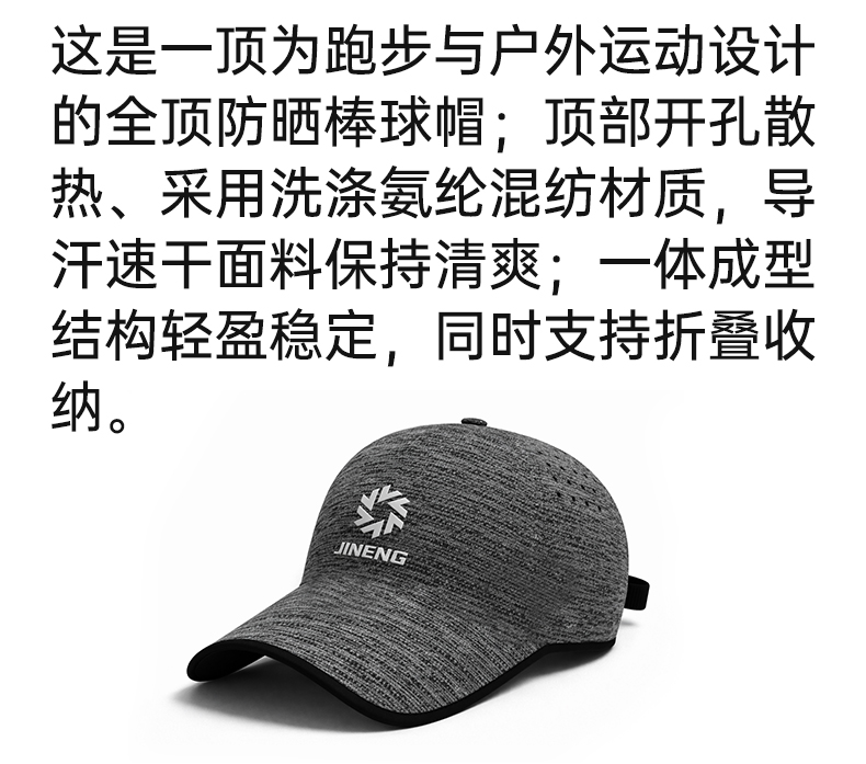 积能春夏户外运动透气遮阳吸汗可调节棒球帽遮阳散热跑步全顶帽