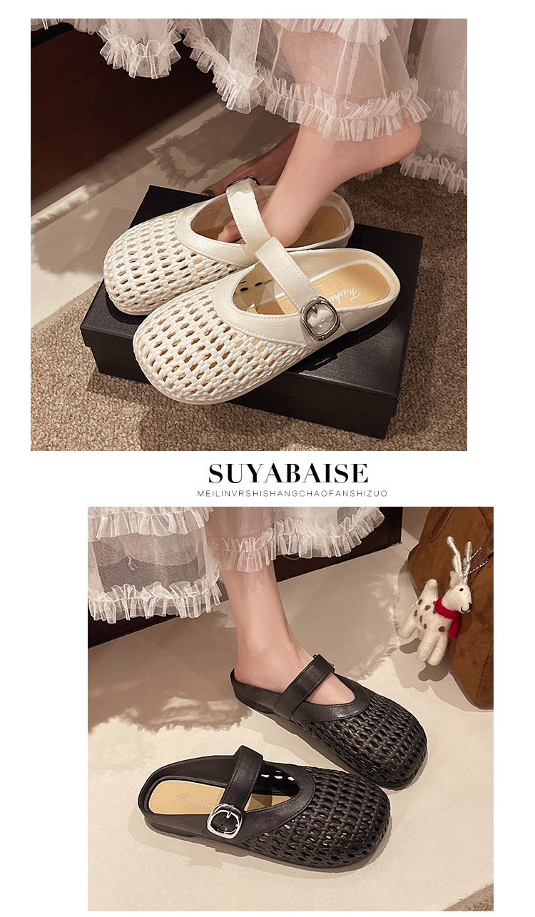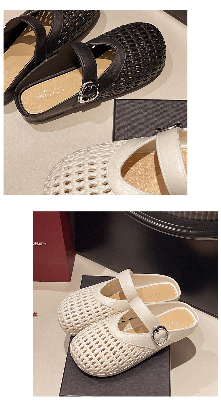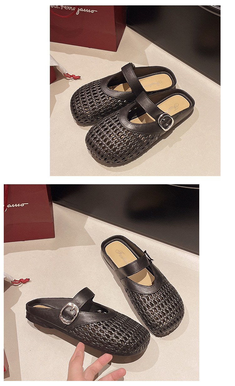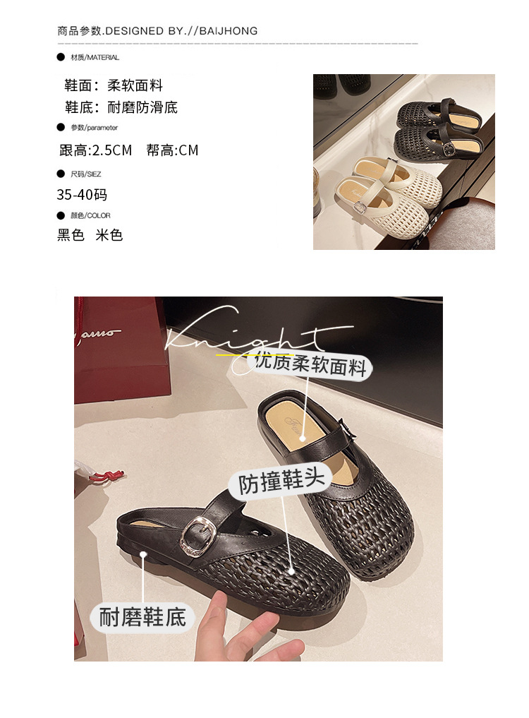 【35.9抢2对!!今夏必备🔥复古甜美半拖鞋✨镂空编织设计,清凉又百搭,走出你的时尚小心机💃2025夏季浅口编织纹镂空圆头鞋 平底女包头时尚百搭复古甜美半拖鞋 今夏热款