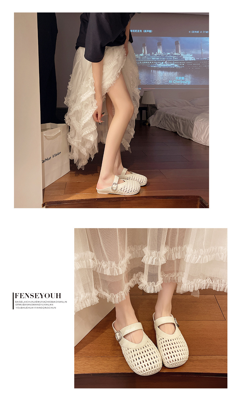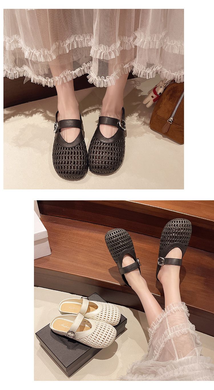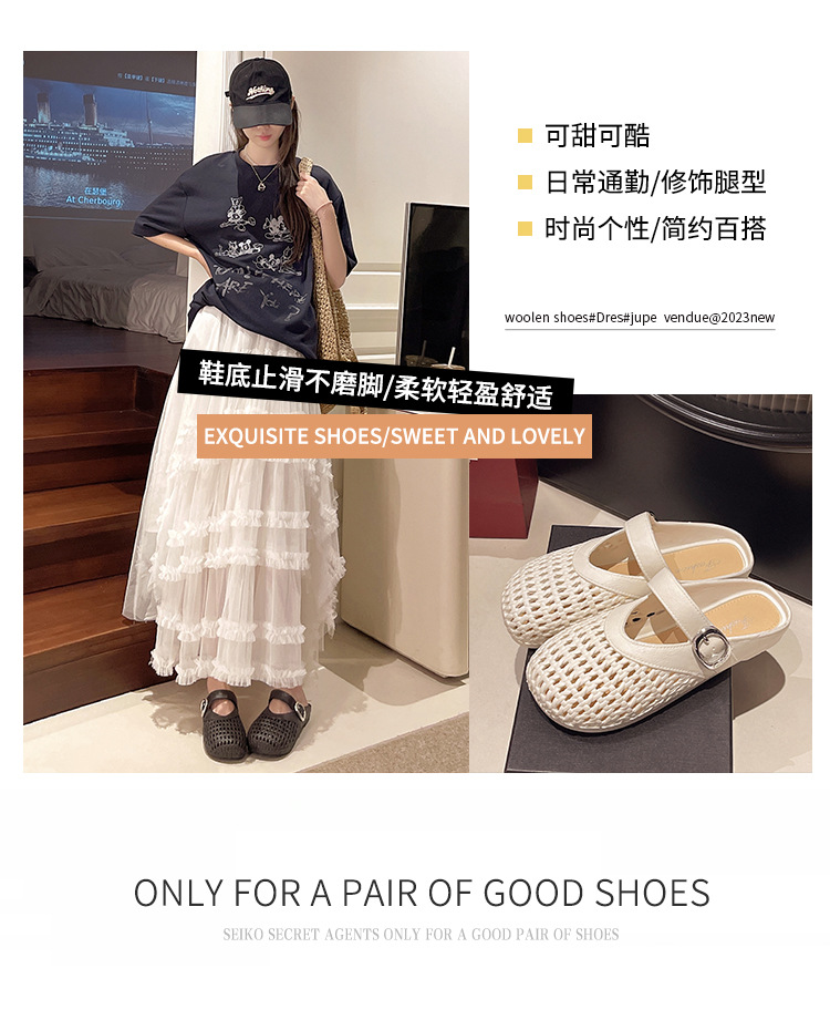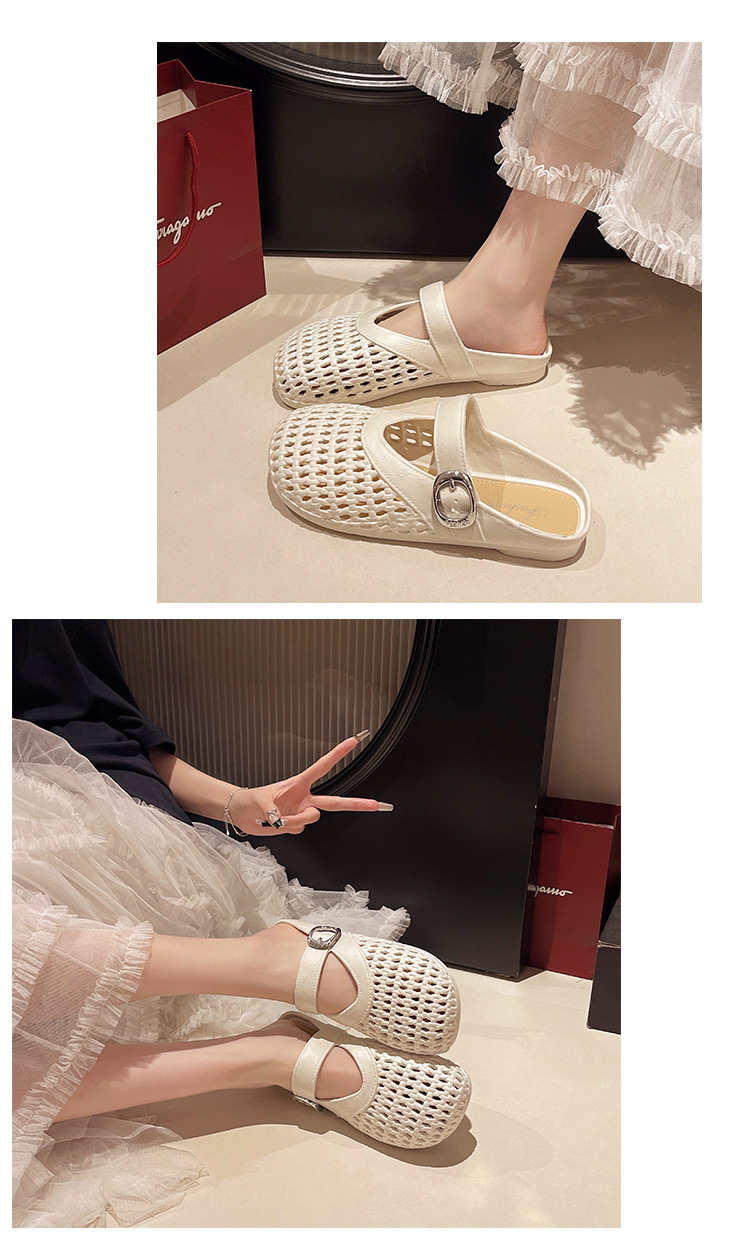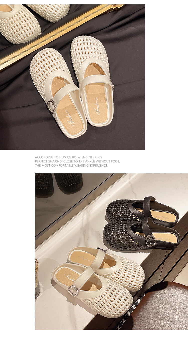 【35.9抢2对!!今夏必备🔥复古甜美半拖鞋✨镂空编织设计,清凉又百搭,走出你的时尚小心机💃2025夏季浅口编织纹镂空圆头鞋 平底女包头时尚百搭复古甜美半拖鞋 今夏热款