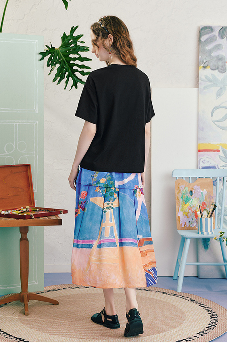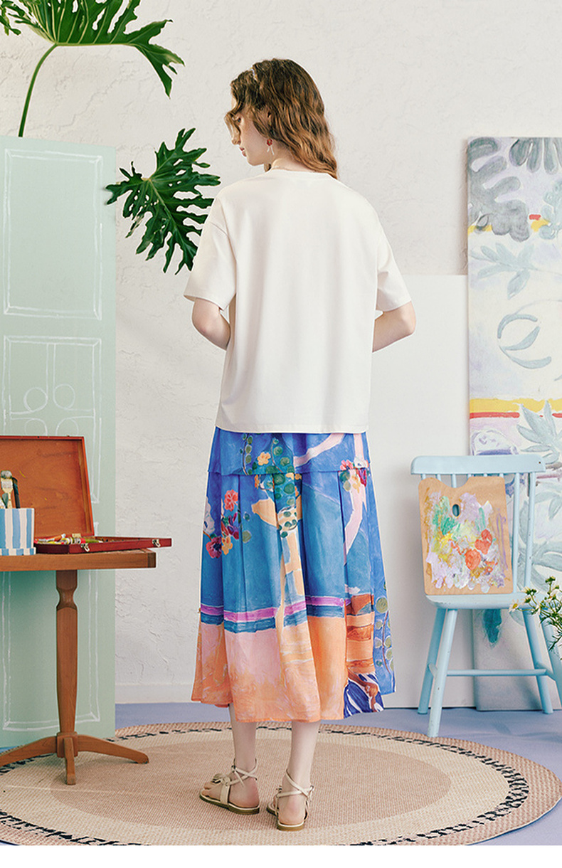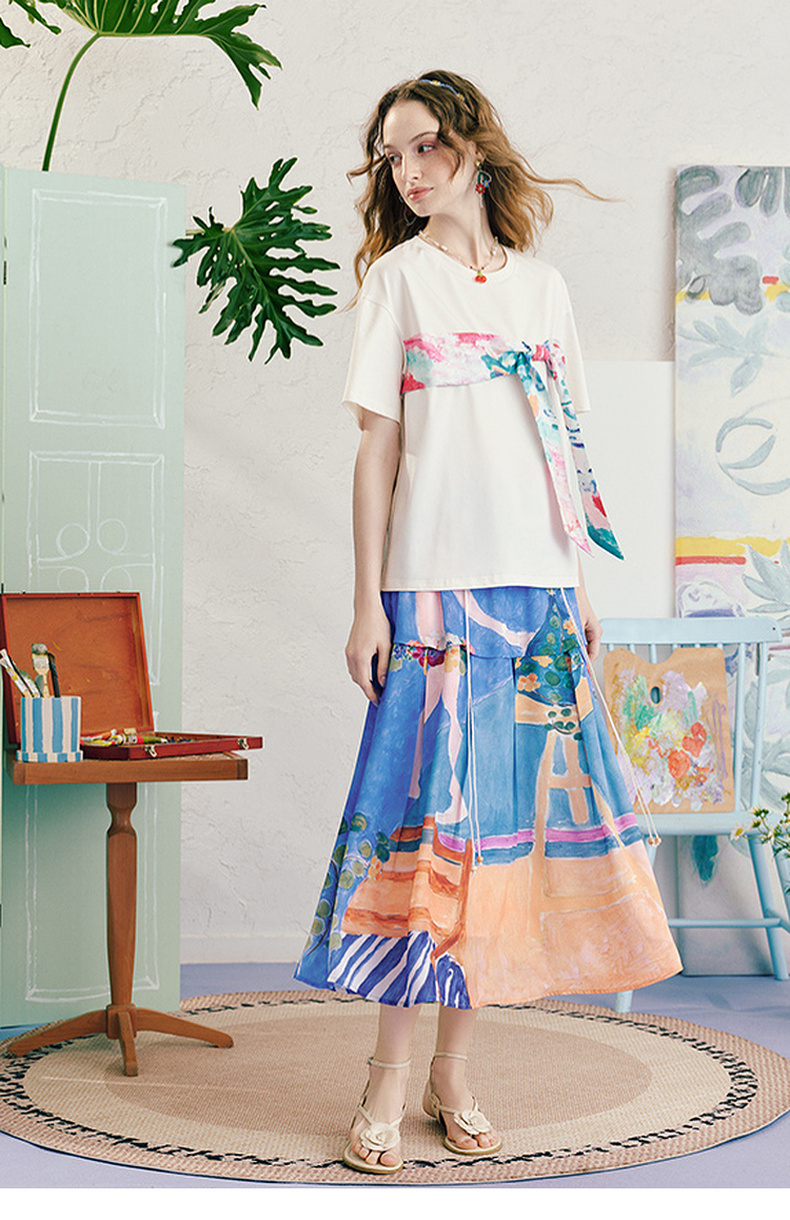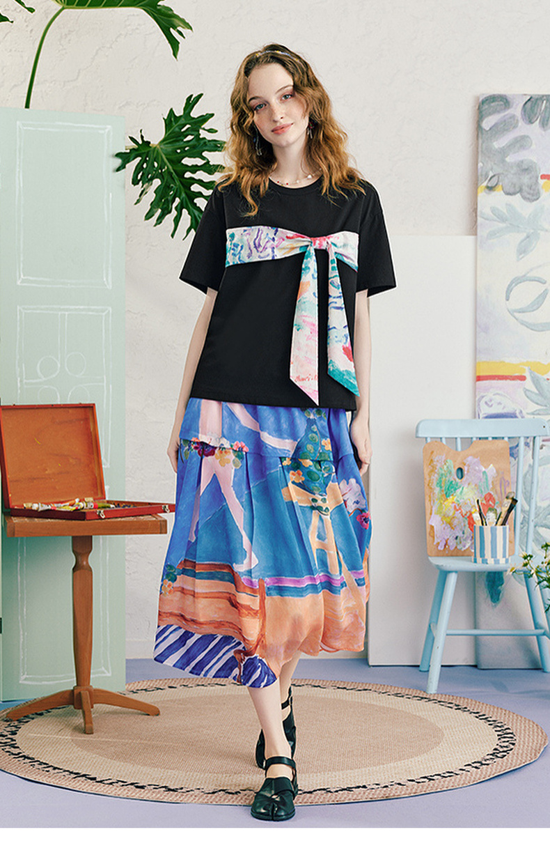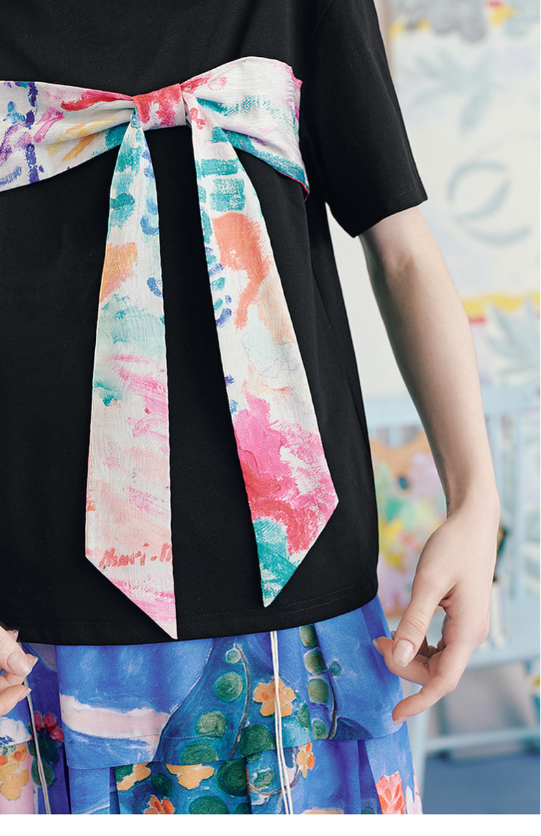 两三事 沁甜蝶浪 2025夏季新款甜美印花蝴蝶结短袖t恤女宽松