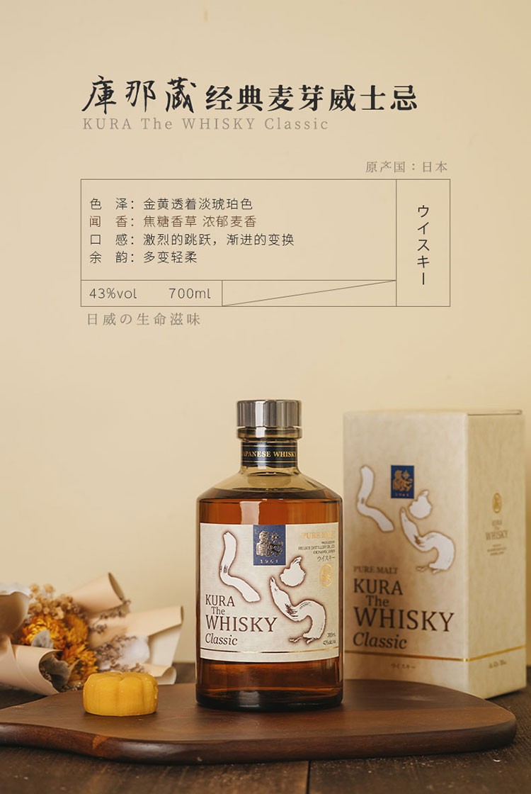 【连续20年金奖受赏】库娜臧(KURA)系列威士忌 日本原瓶进口