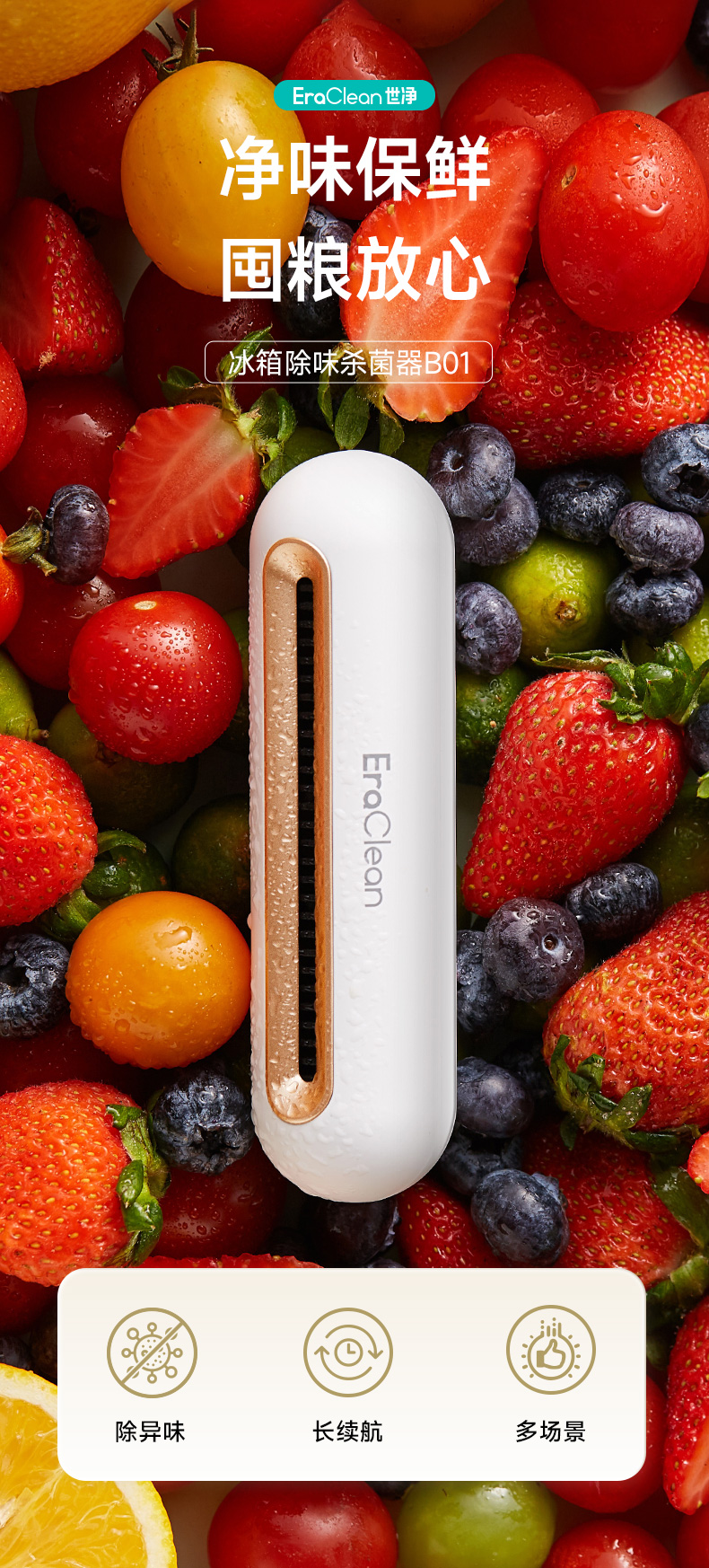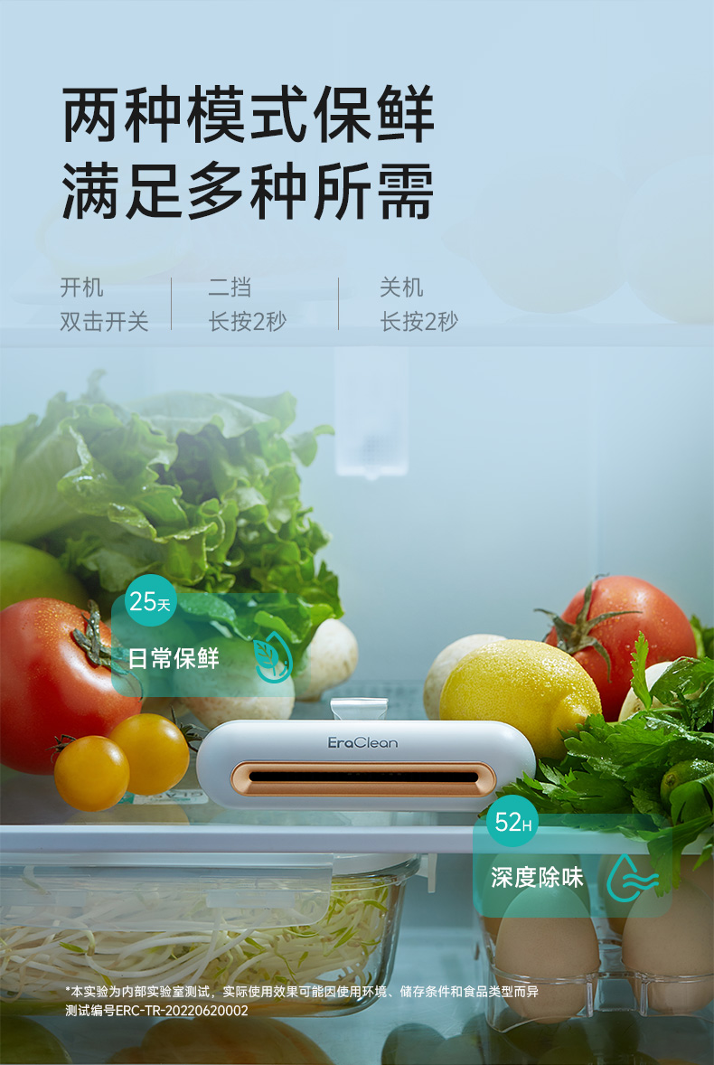 【EraClean世净 冰箱除味消毒器】有效减少冰箱混杂异味 清新冰箱环境 抑制果蔬表层乙烯等催熟剂 延长食物鲜活度