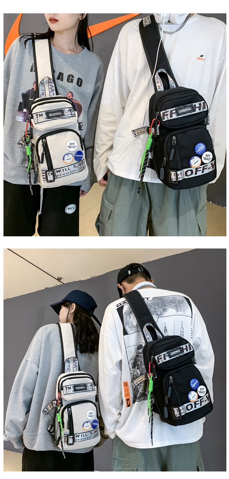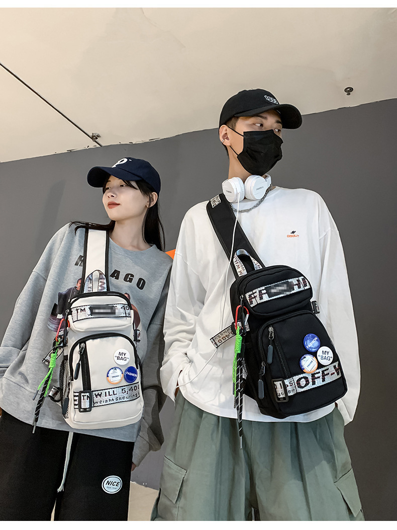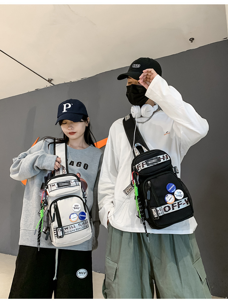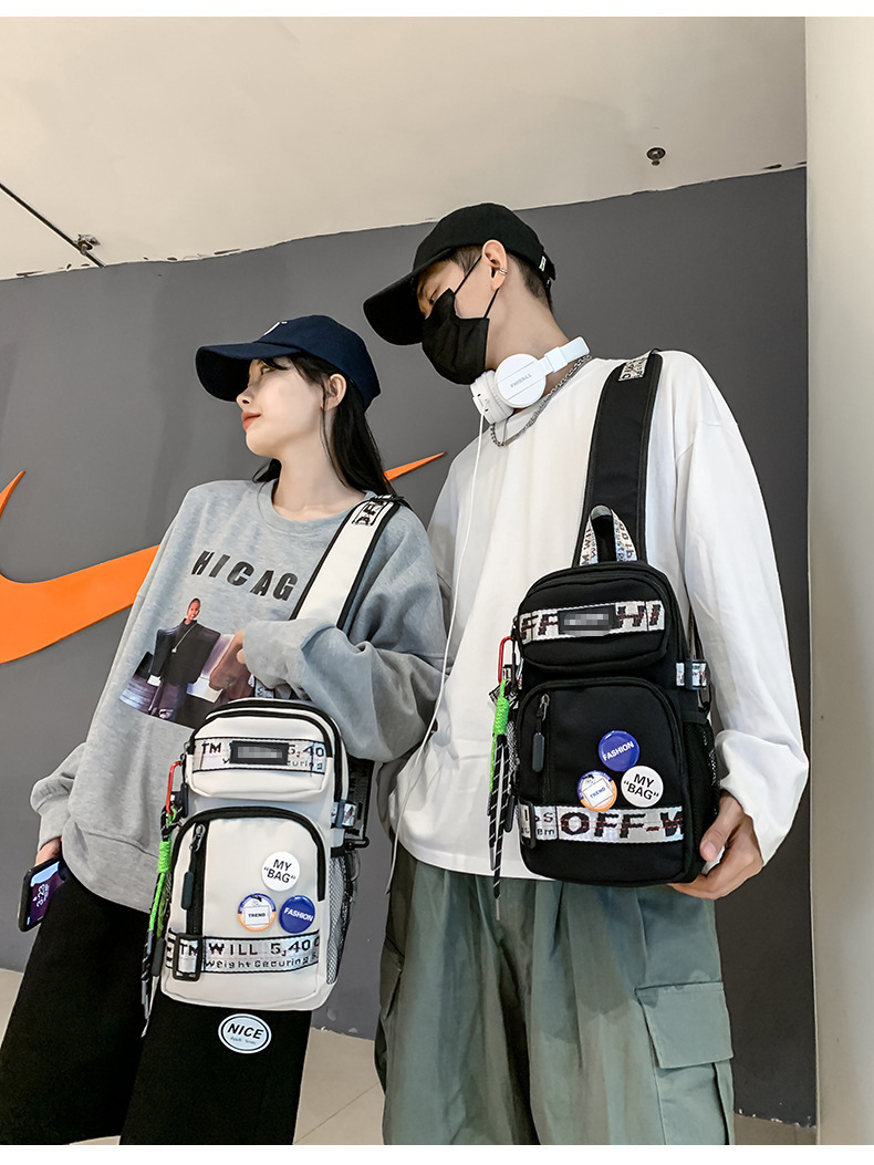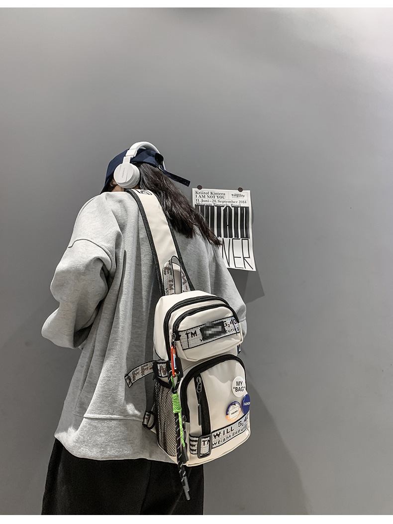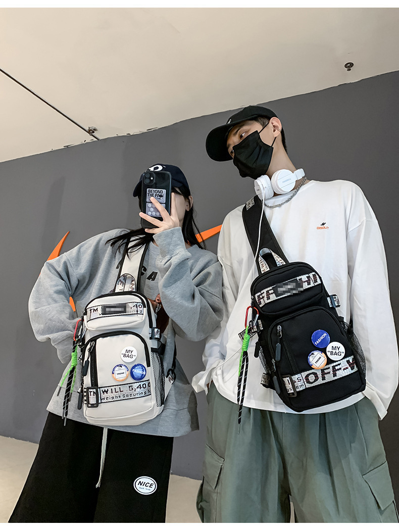 学生背包情侣款潮牌胸包男大容量防水斜挎包个性休闲多功能小背包户外运动包包