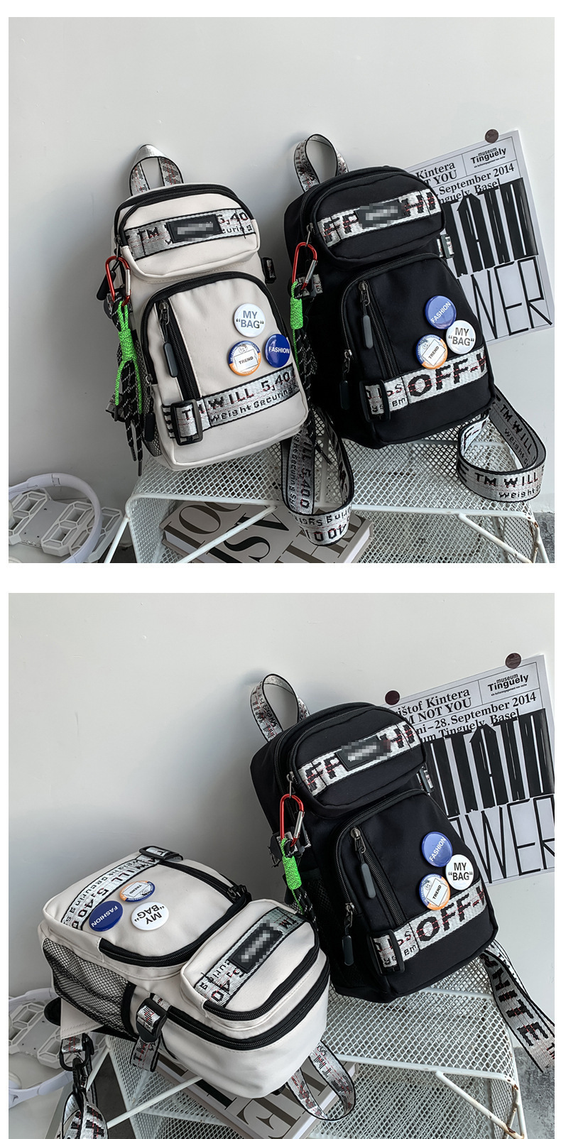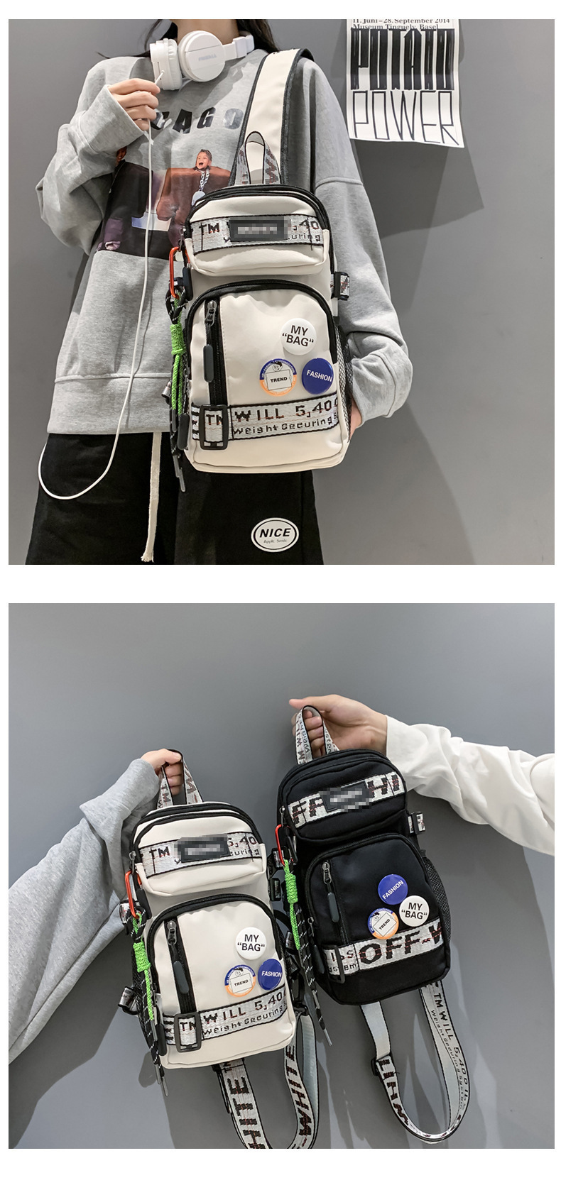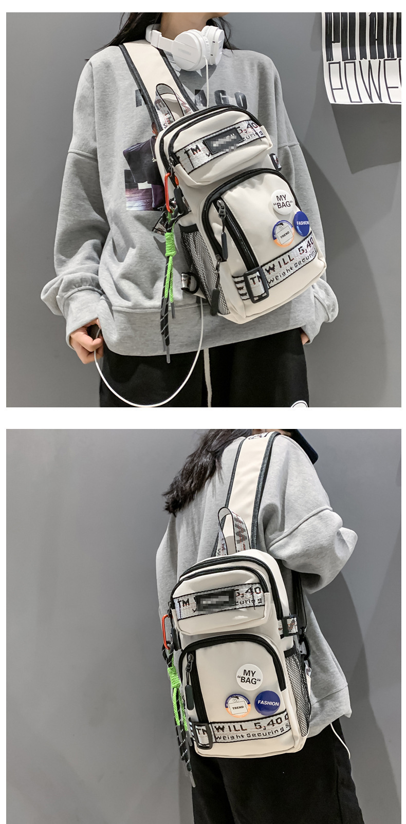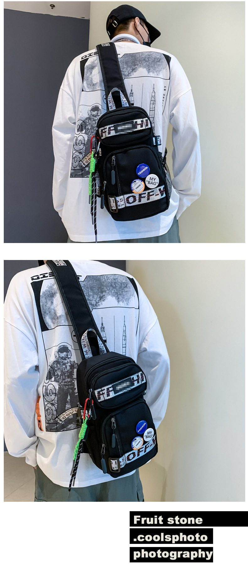 学生背包情侣款潮牌胸包男大容量防水斜挎包个性休闲多功能小背包户外运动包包