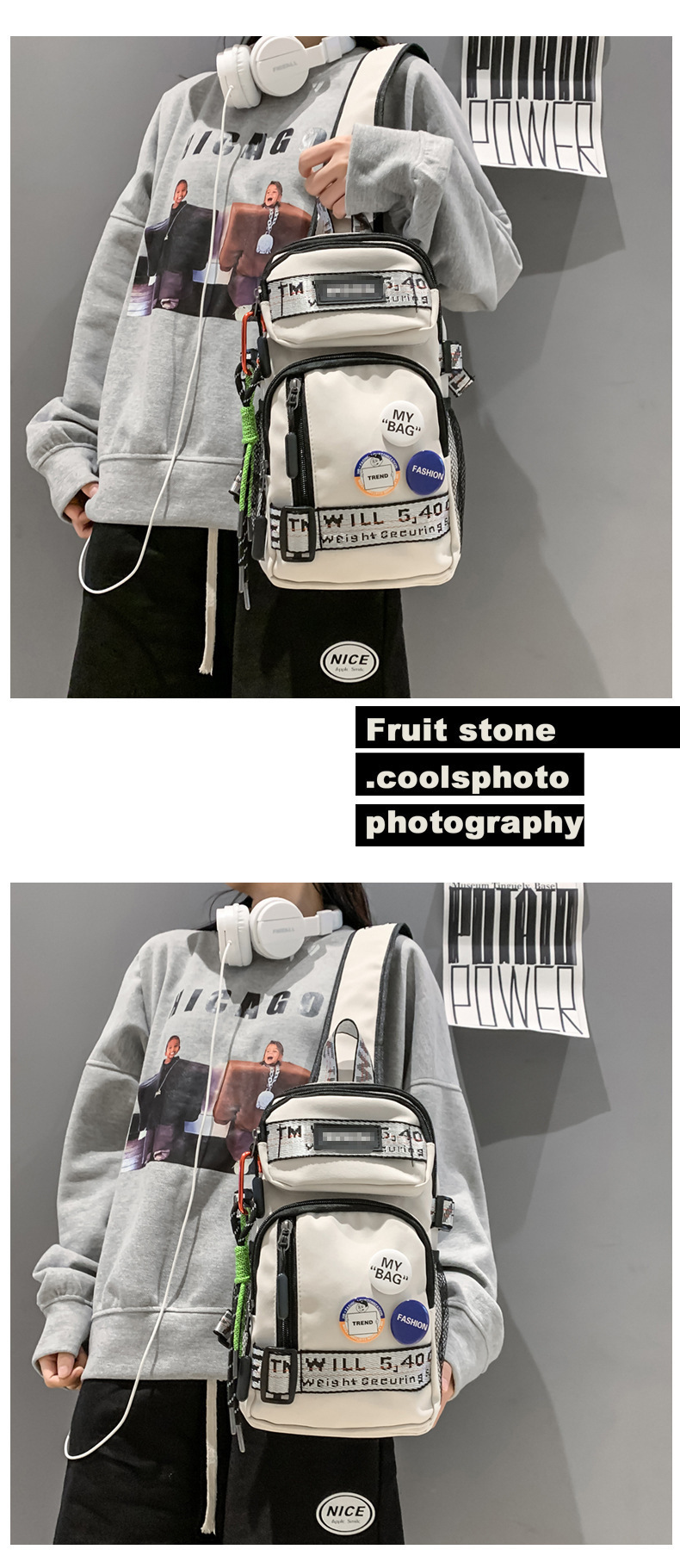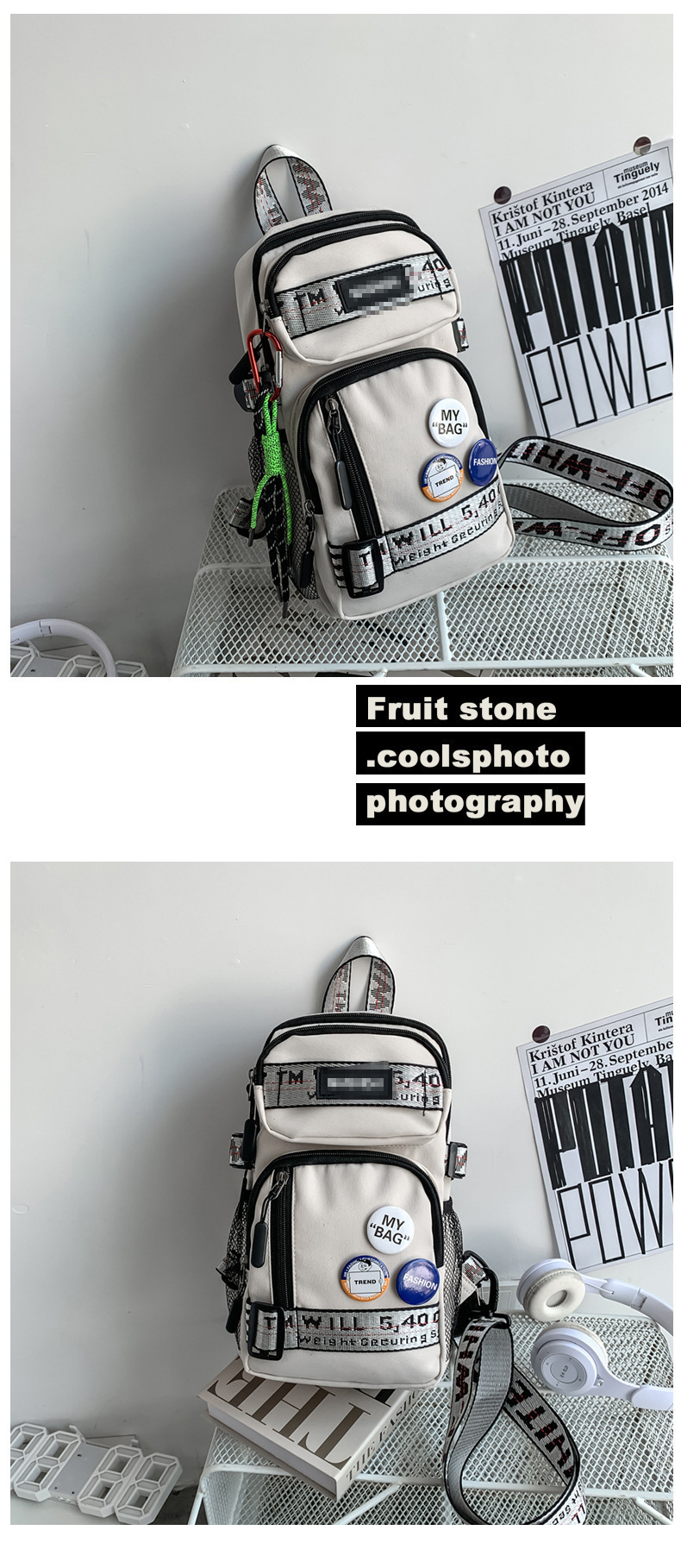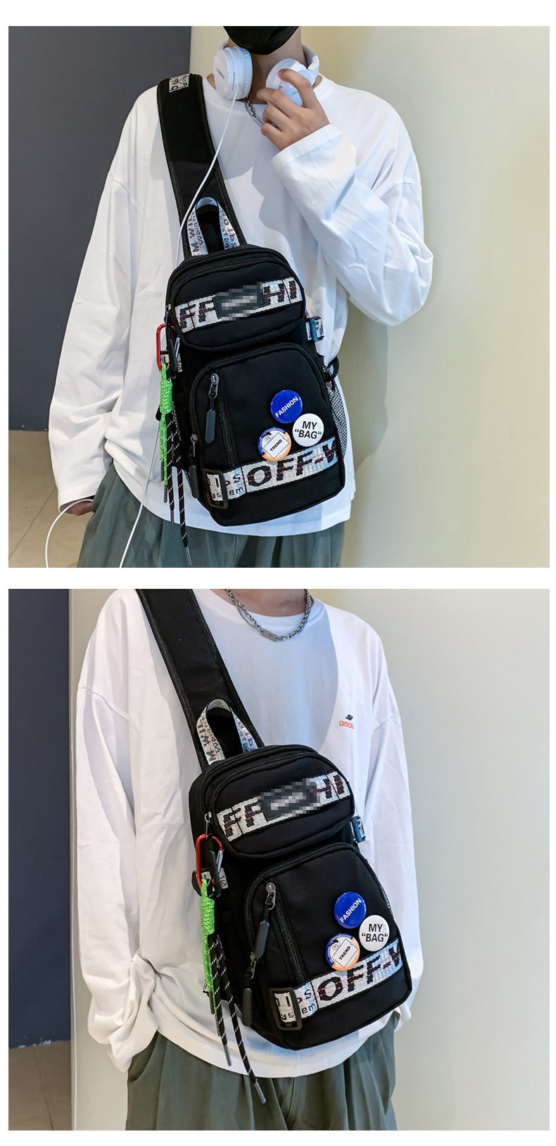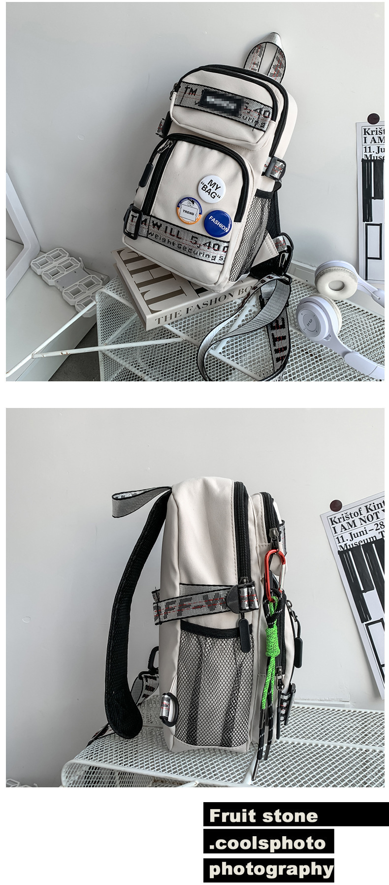 学生背包情侣款潮牌胸包男大容量防水斜挎包个性休闲多功能小背包户外运动包包