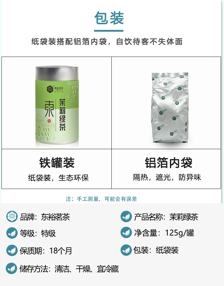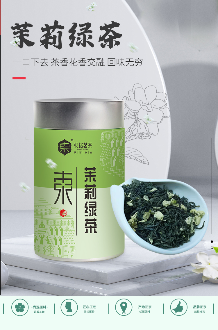 【质农】东裕特级茉莉绿茶125克罐装 茶香与花香交融 回味无穷