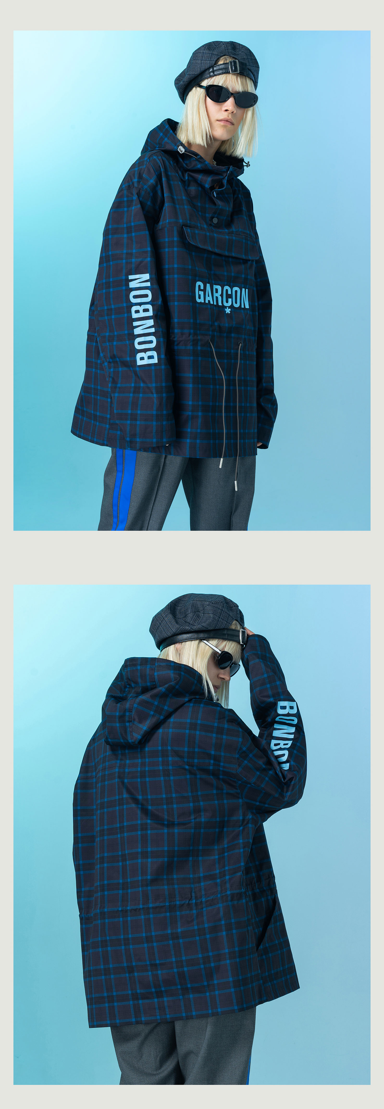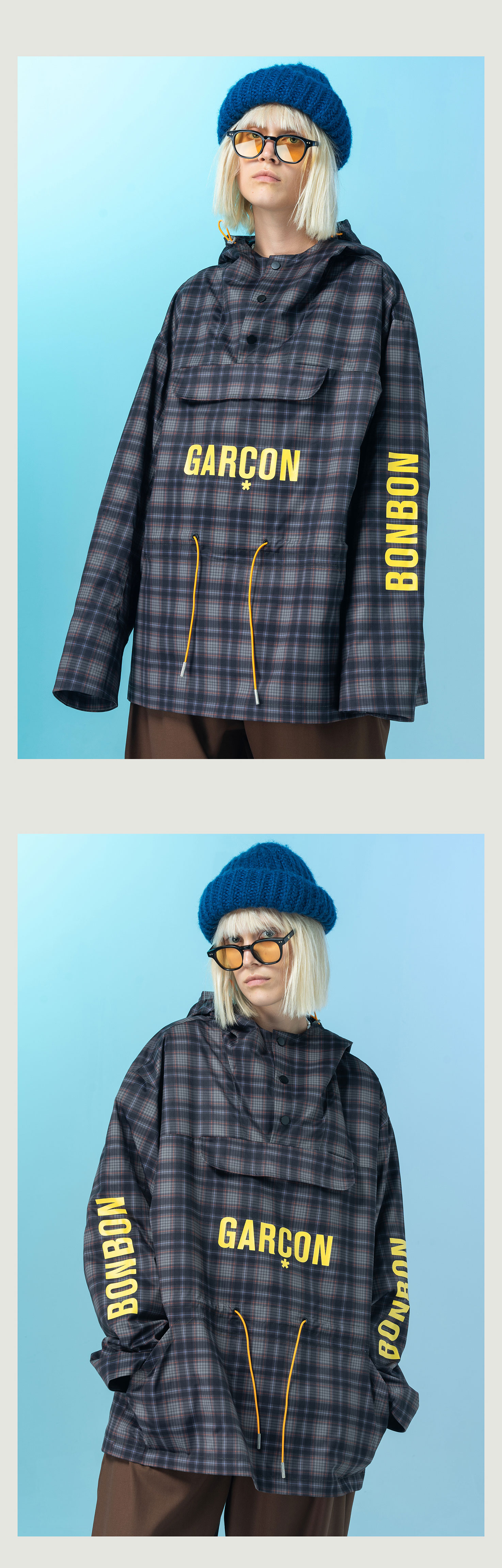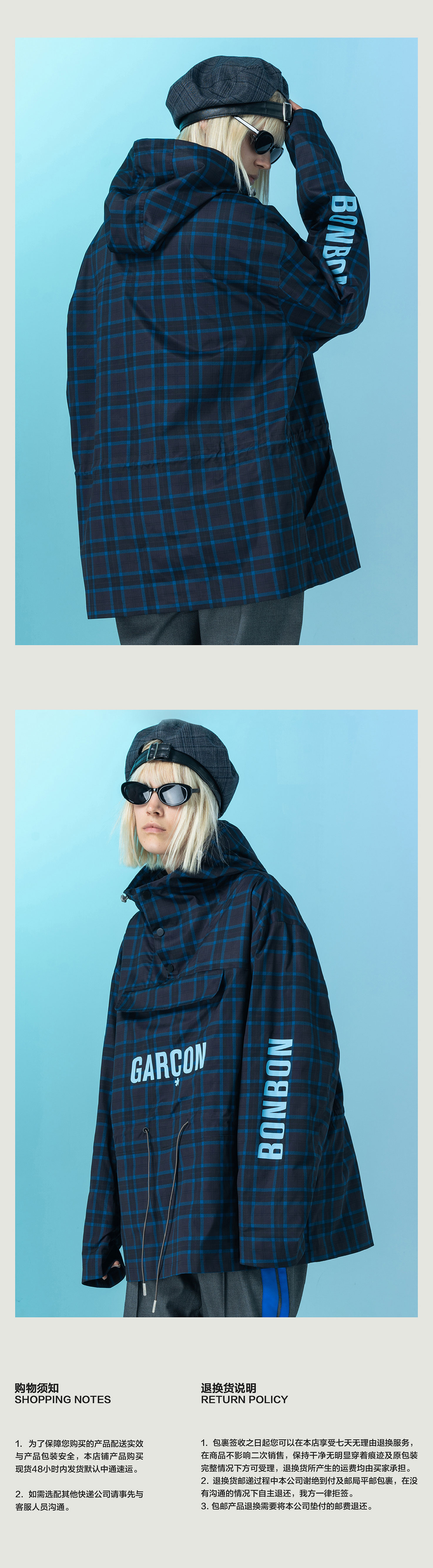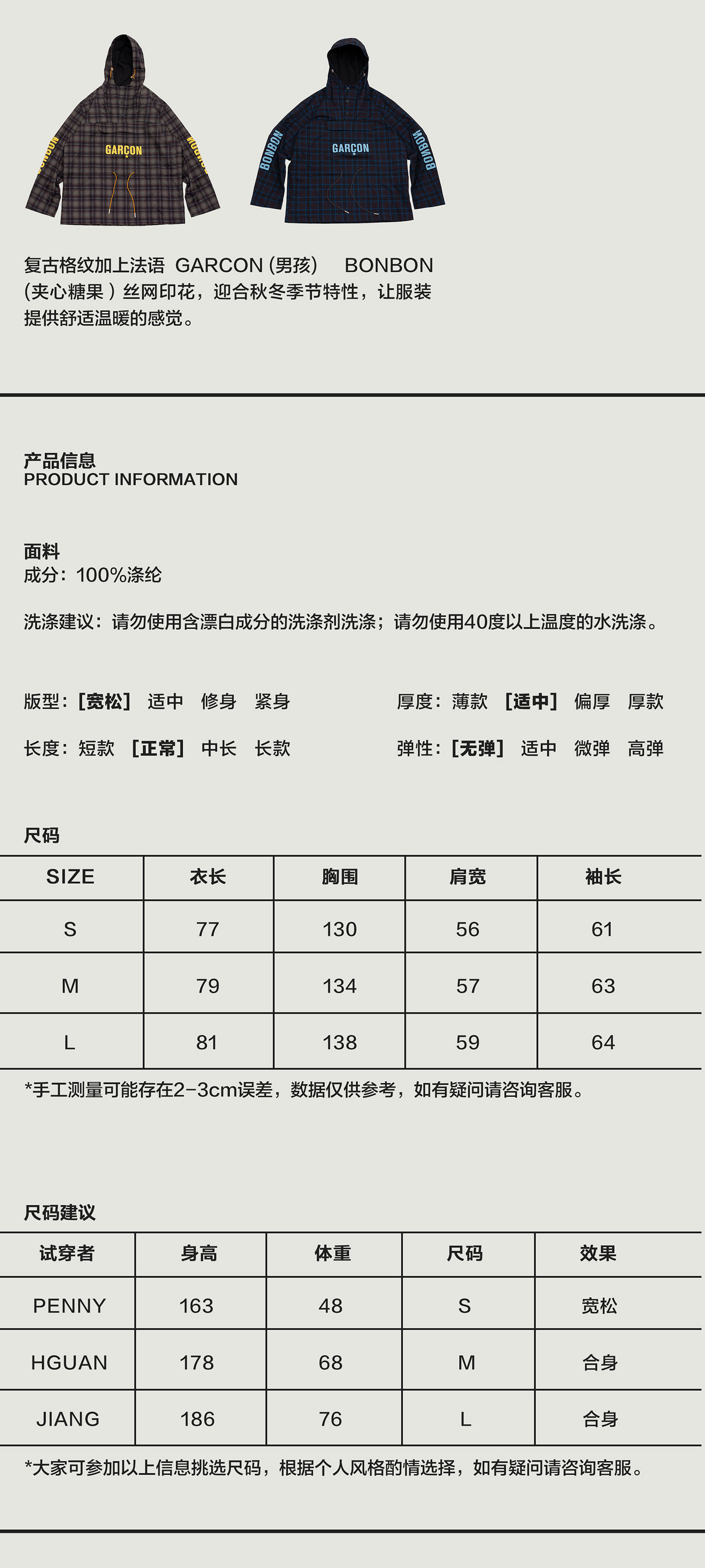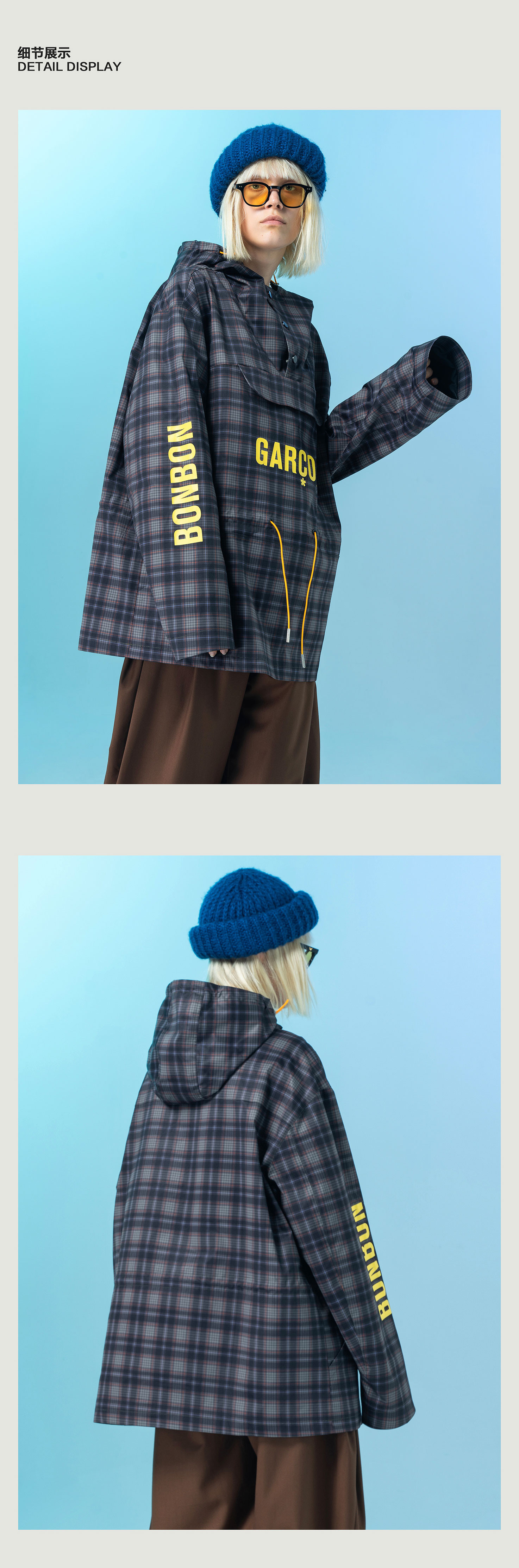 | 领型: 连帽 | 颜色: 蓝色格纹,棕色格纹 |