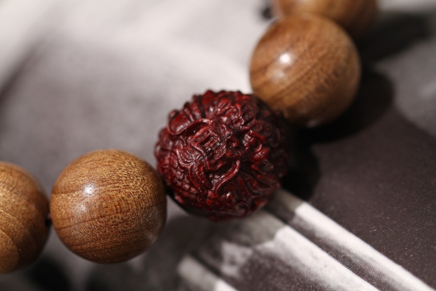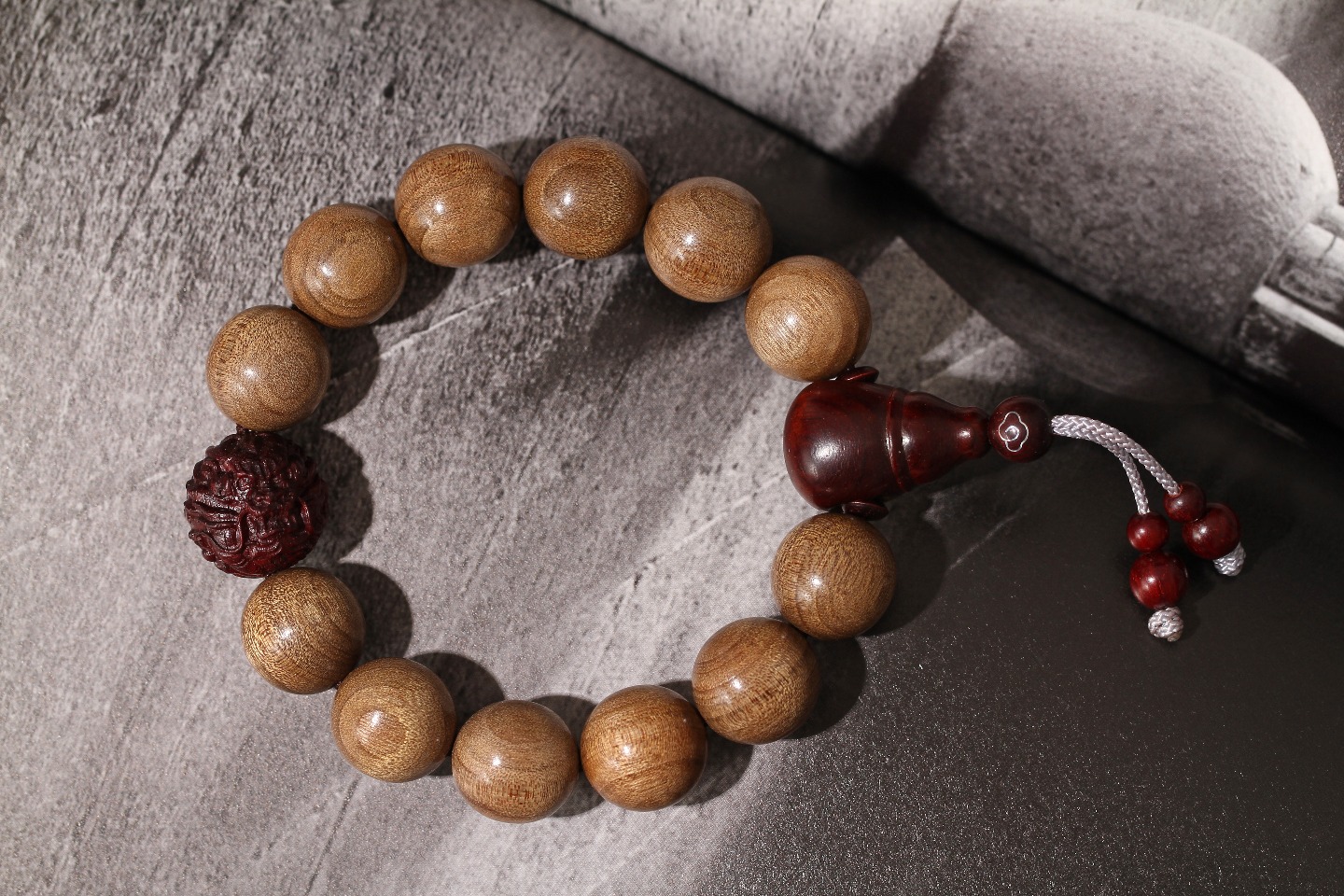 搭配:金丝楠木搭配小叶紫檀护身龙,紫檀一体三通及紫檀碟片,紫檀镶银祥云。