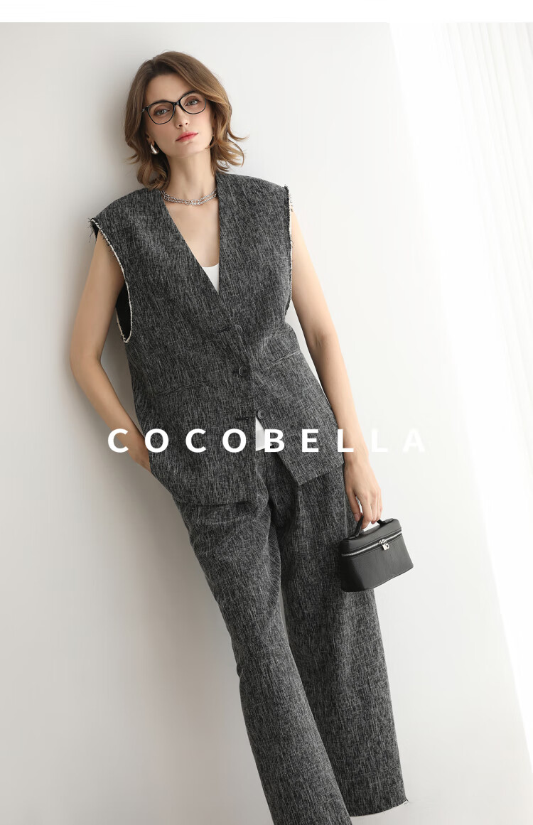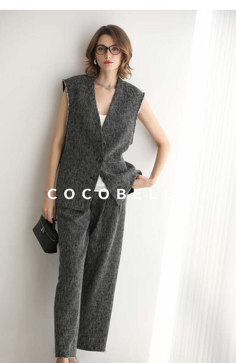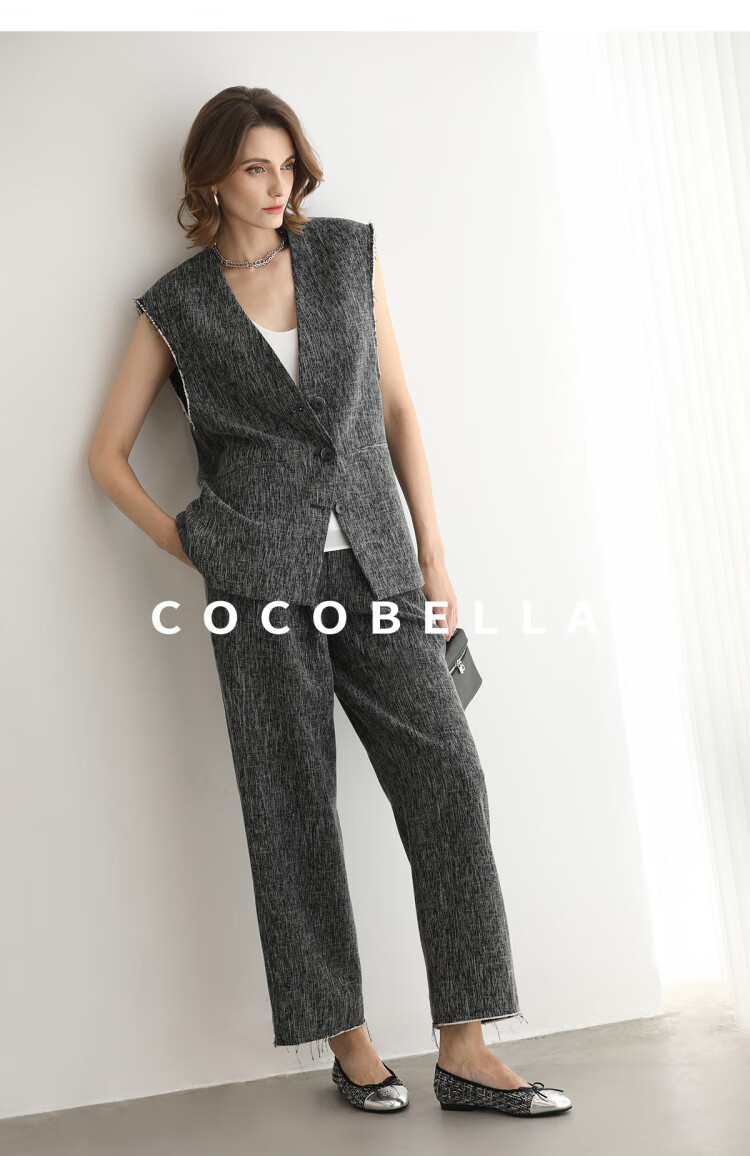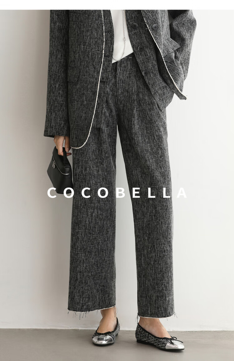 COCOBELLA雅痞风手逢装饰线九分西裤女利落直筒休闲裤PA3062