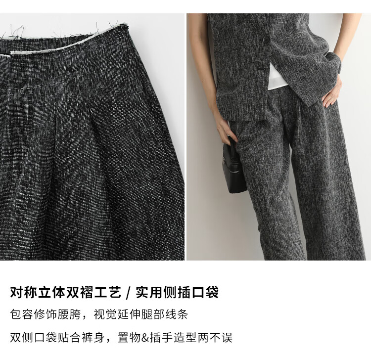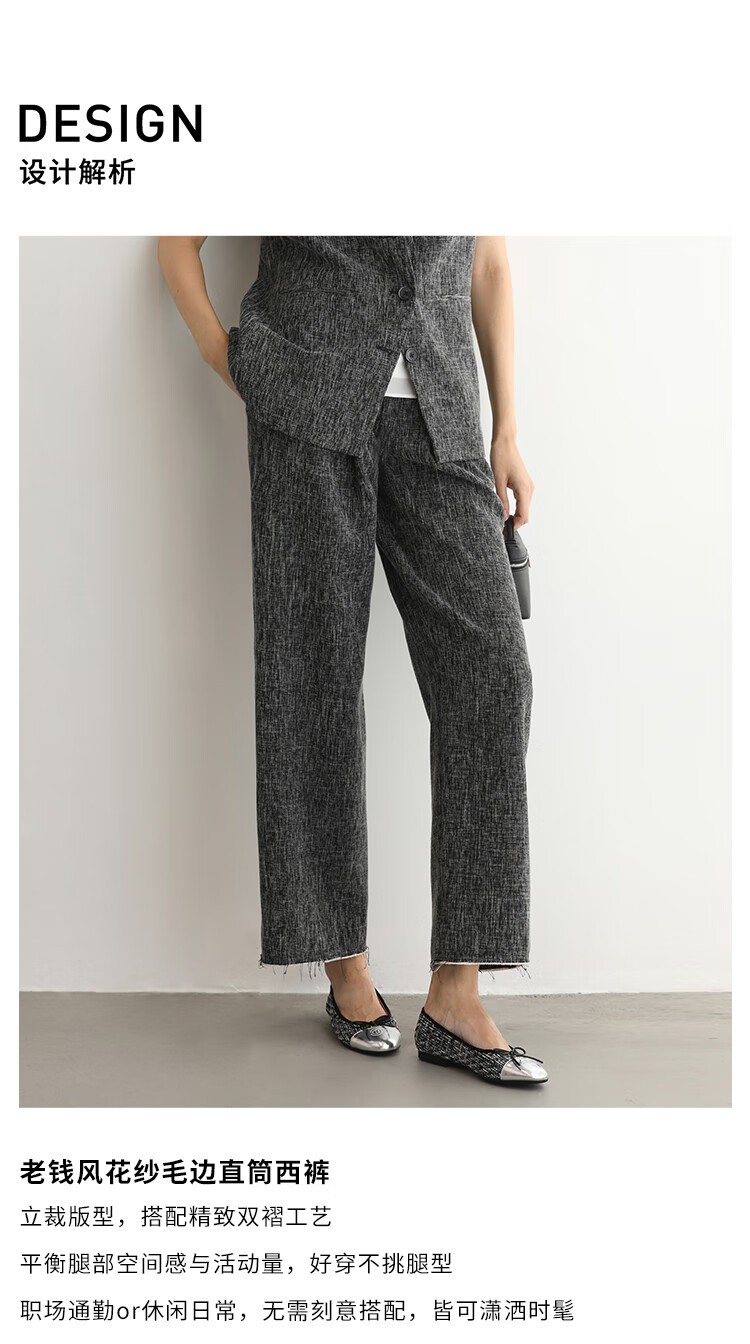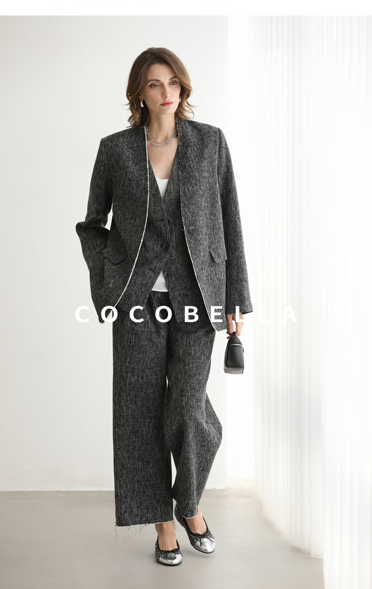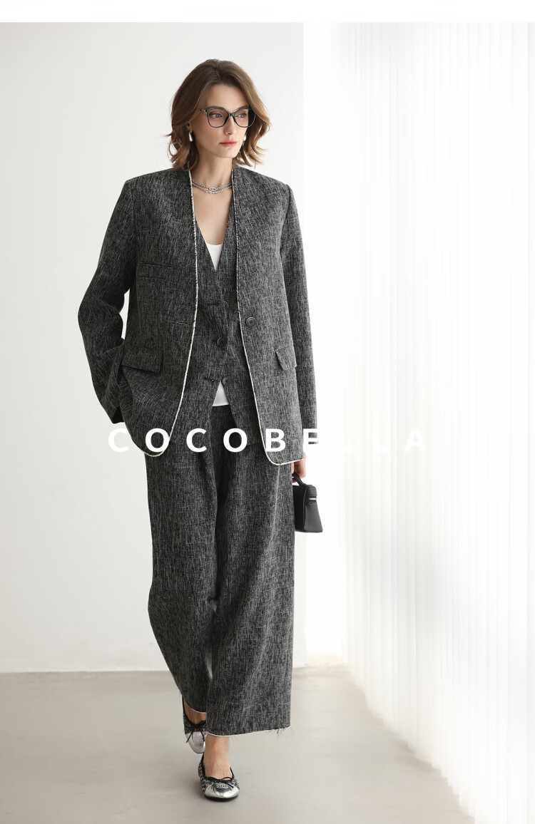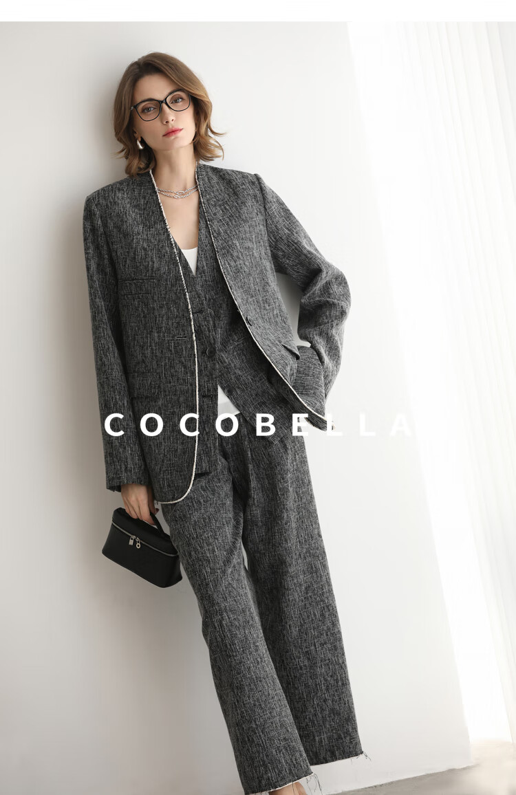 COCOBELLA雅痞风手逢装饰线九分西裤女利落直筒休闲裤PA3062