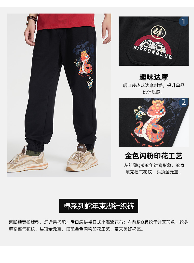 ONIARAI/鬼洗25春夏棒系列招财蛇年束脚休闲针织裤男式 N540167