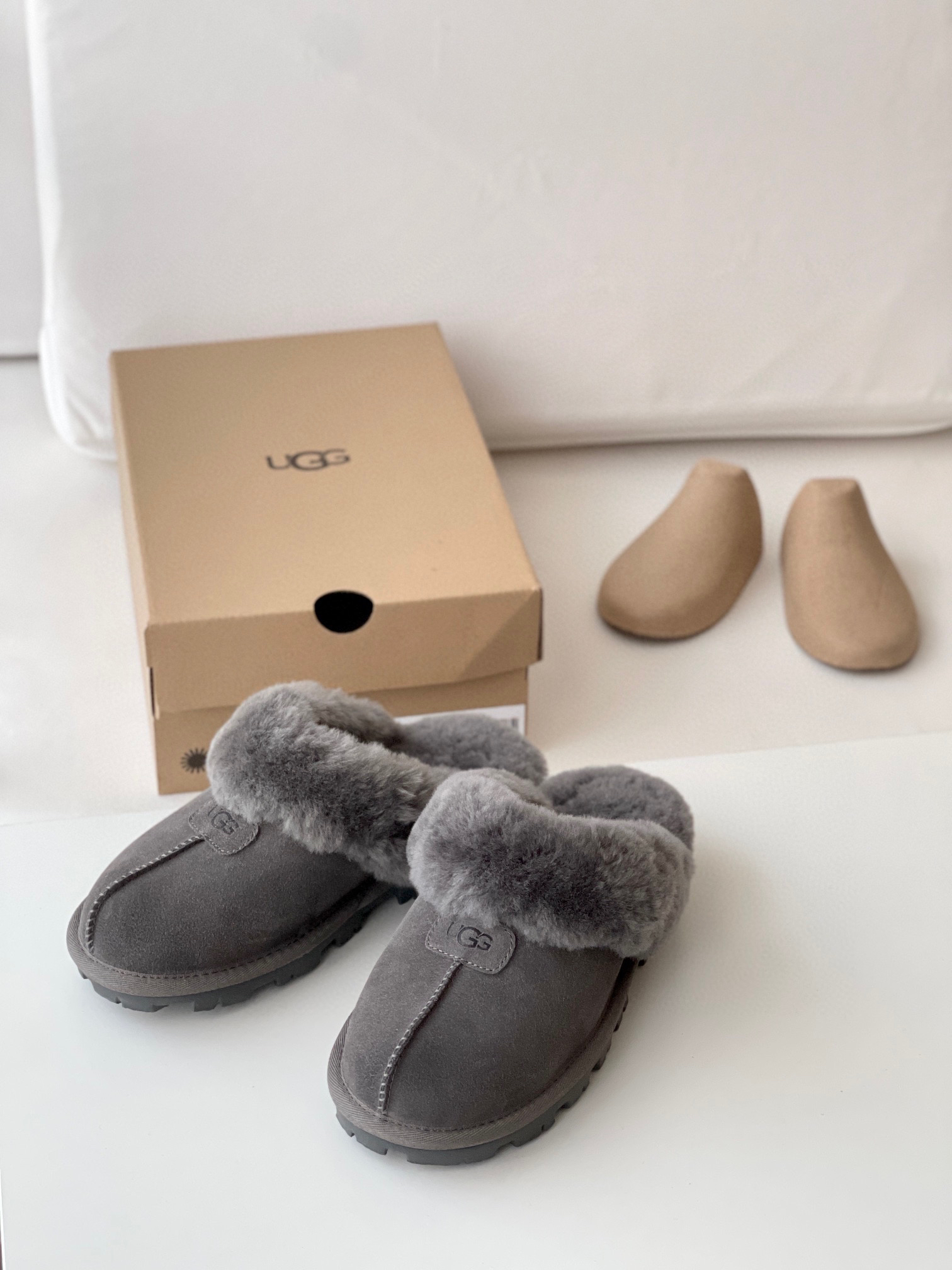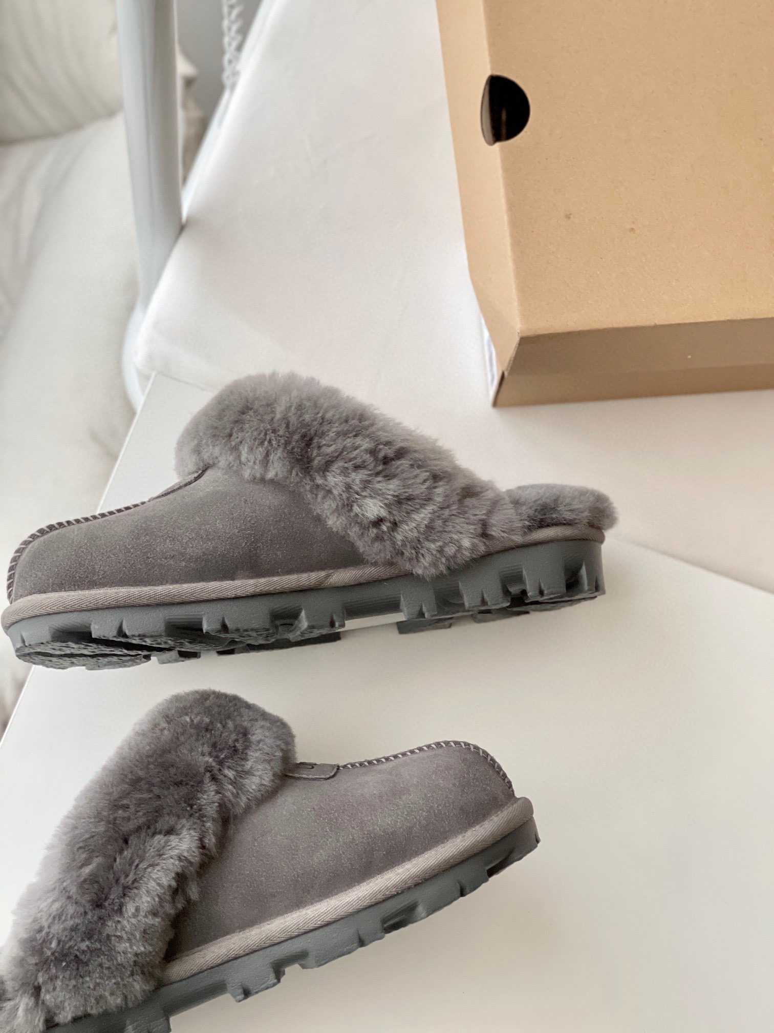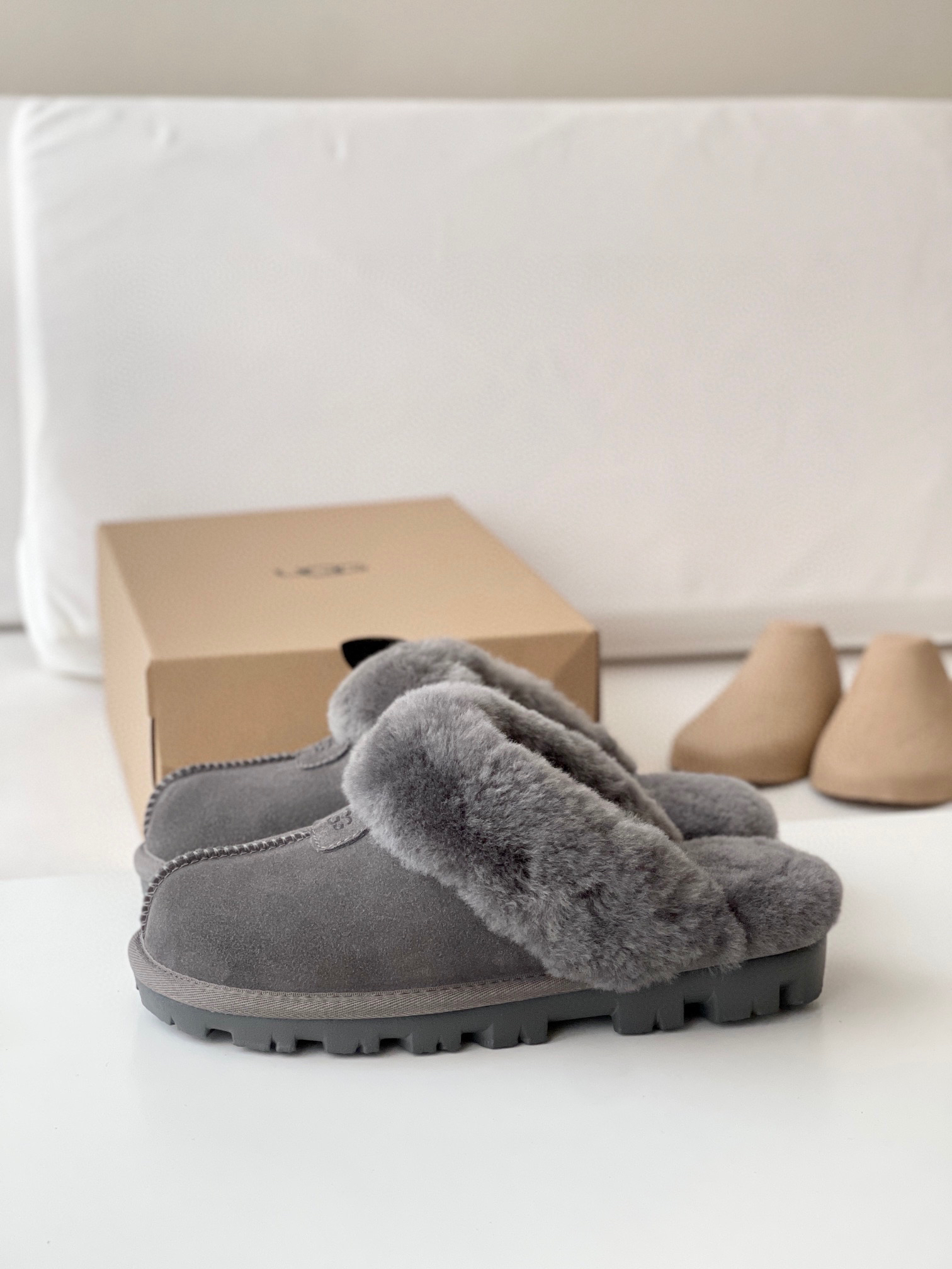 千颂伊同款(星拖) 采用:超强防水的A级皮料,EVA超轻大底,隆丰17mm毛长的羊皮毛一体!后半脚掌有3毫米高的乳胶垫!走路不会掉脚❗️ 最近几年 深受各路人士的喜爱!🉑️居家🉑️外穿❗️ 颜色:羚羊粽 -栗色- 黑色 -灰色 鞋码:35-44(正码选择)