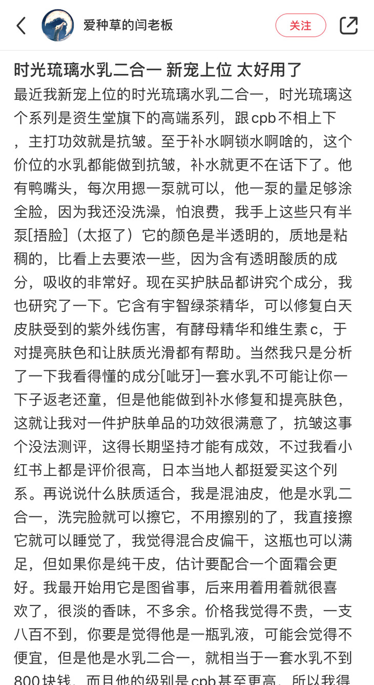 这款是比较润的水,质地像乳液一样