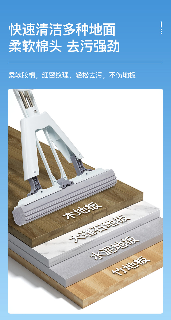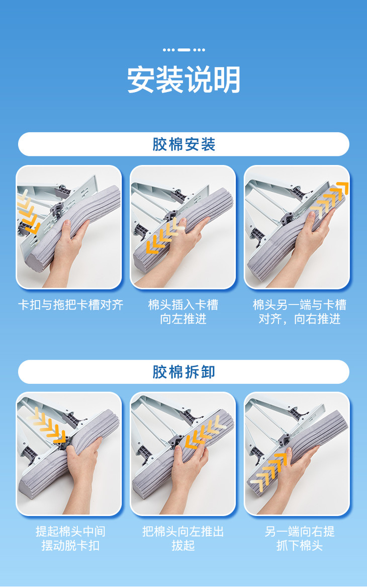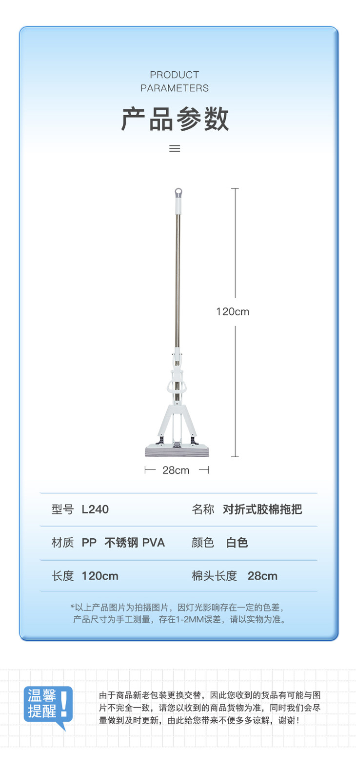 齐心L240 对折胶棉拖把 棉头长28CM 1杆1头(不锈钢直杆)