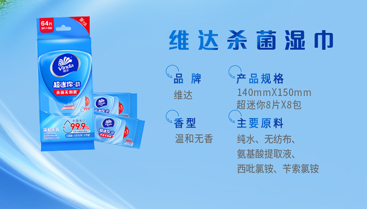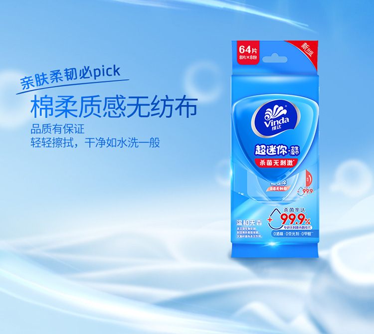 【官方包邮】维达超迷你便携成人湿巾8片8包*3提