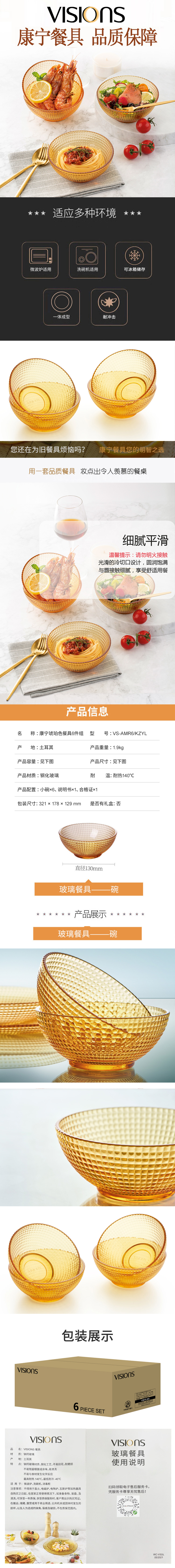 【小家电】VISIONS琥珀色餐具(晶莹系列)琥珀色餐具6件组(6个小碗) HF