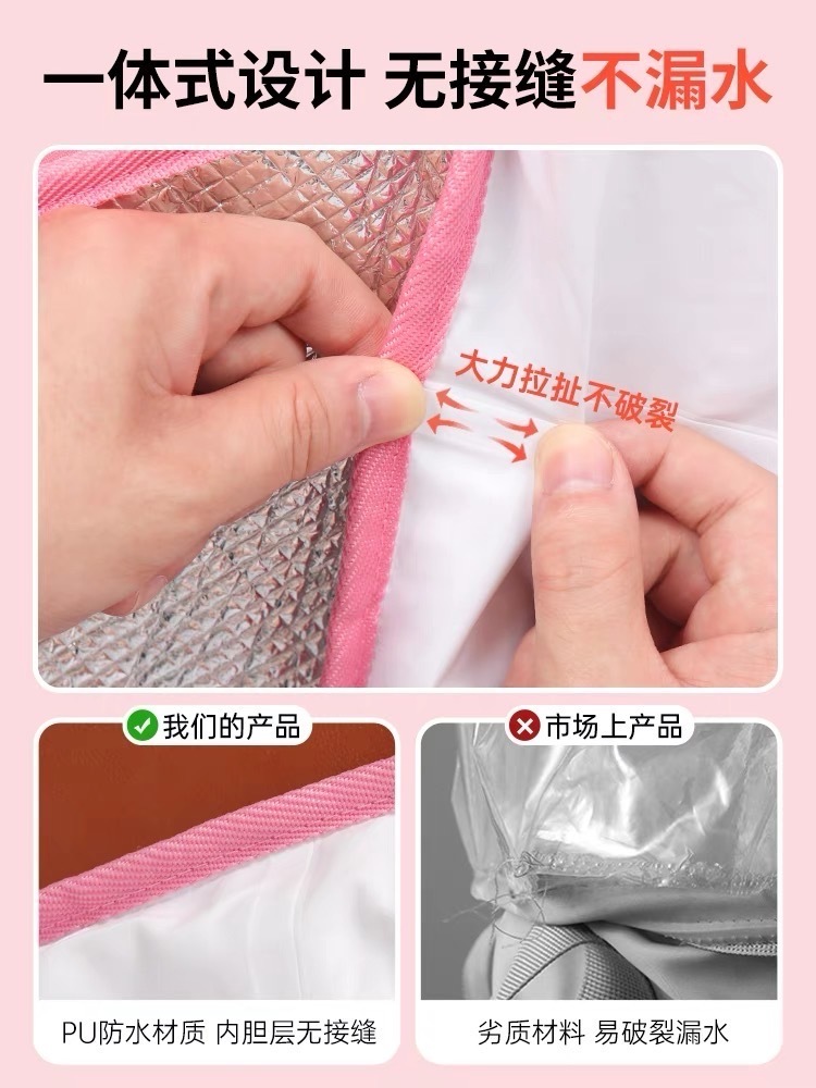 材质:牛津布pu+铝膜保温棉+PEVE环保内胆