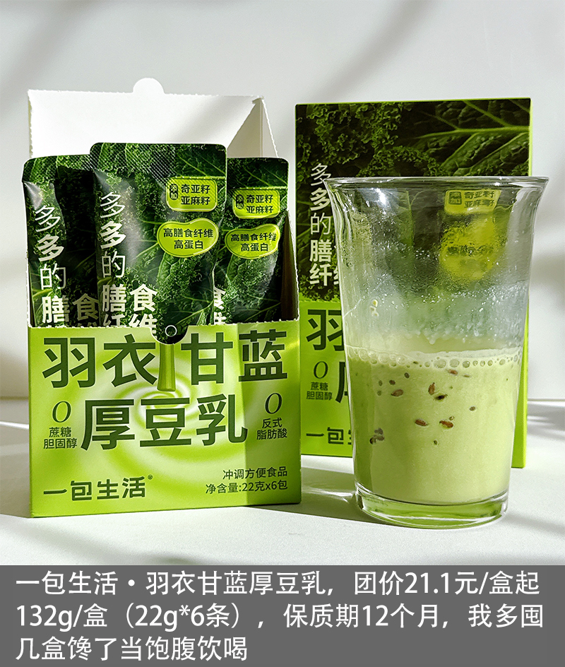 【福利社专属】一包生活羽衣甘蓝厚豆乳豆浆粉高膳食纤维高蛋白代餐饱腹