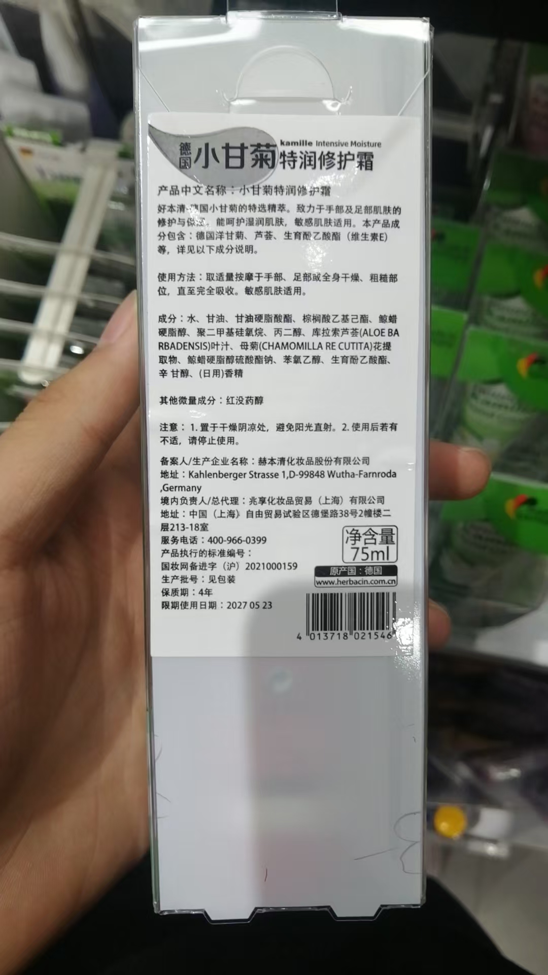 【中欧班列】【秋冬护手必备】新款德国贺本清小甘菊特润护手霜75ml/瓶