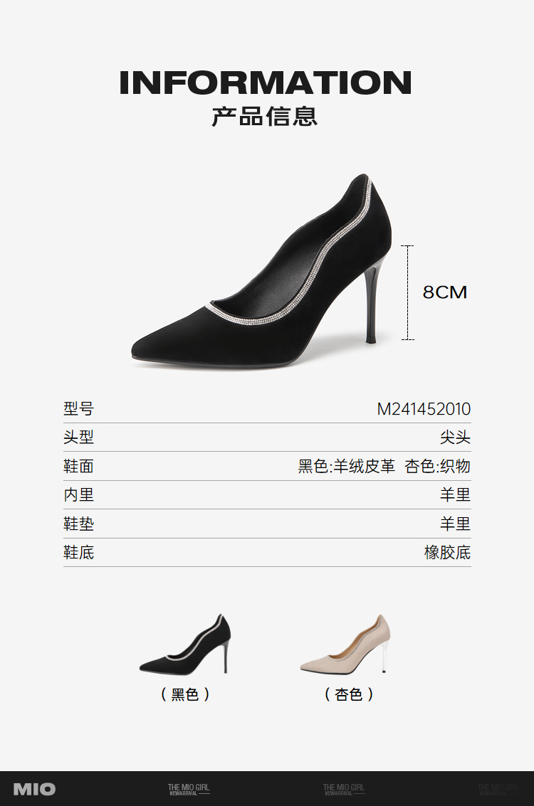 MIO米奥春季尖头细跟派对高跟鞋优雅显高浅口单鞋女鞋M241452010