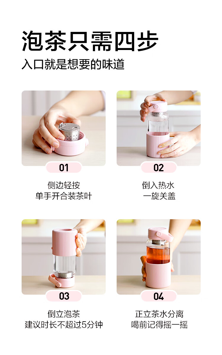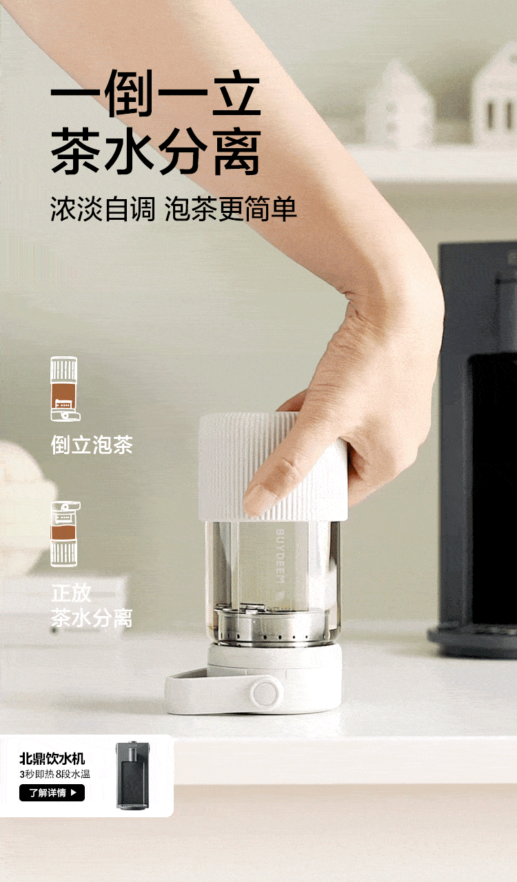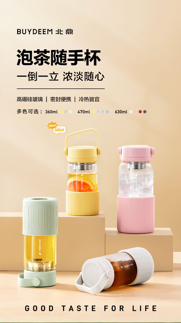 【专柜-北鼎】北鼎DG45/A1 泡茶随手杯 新硅胶套版 茶水分离水杯女高颜值