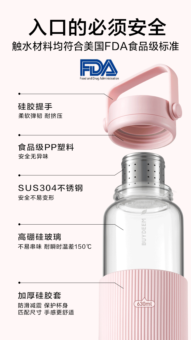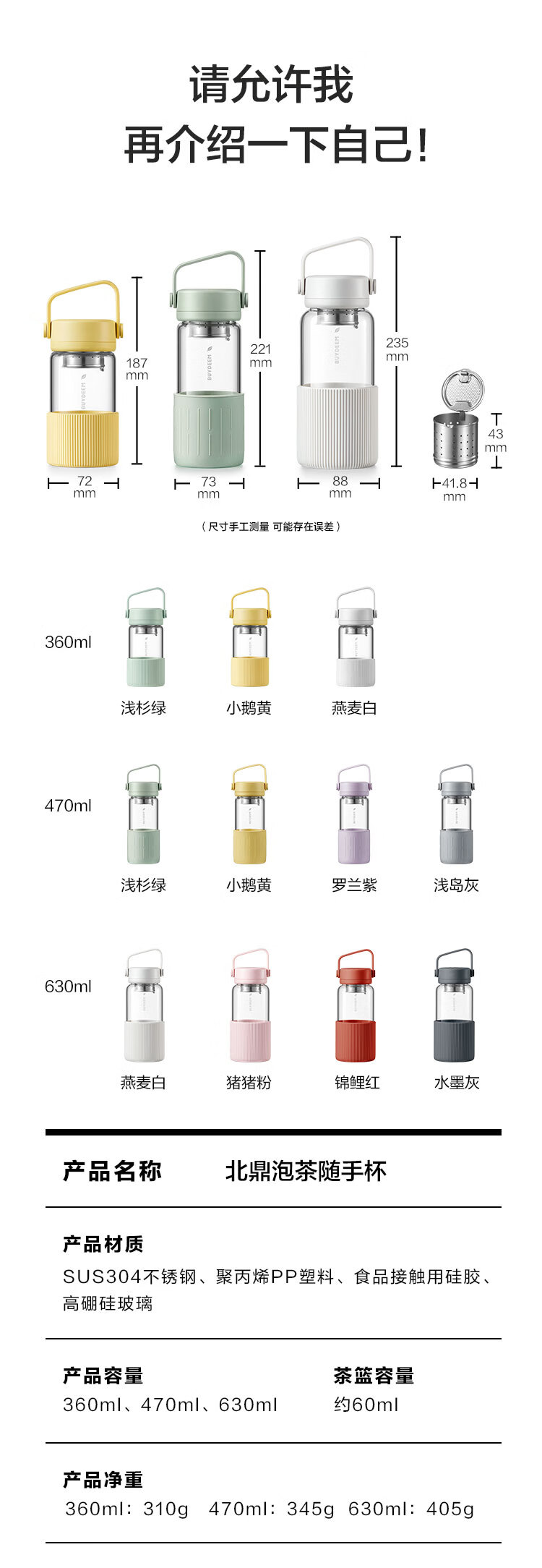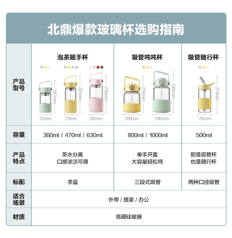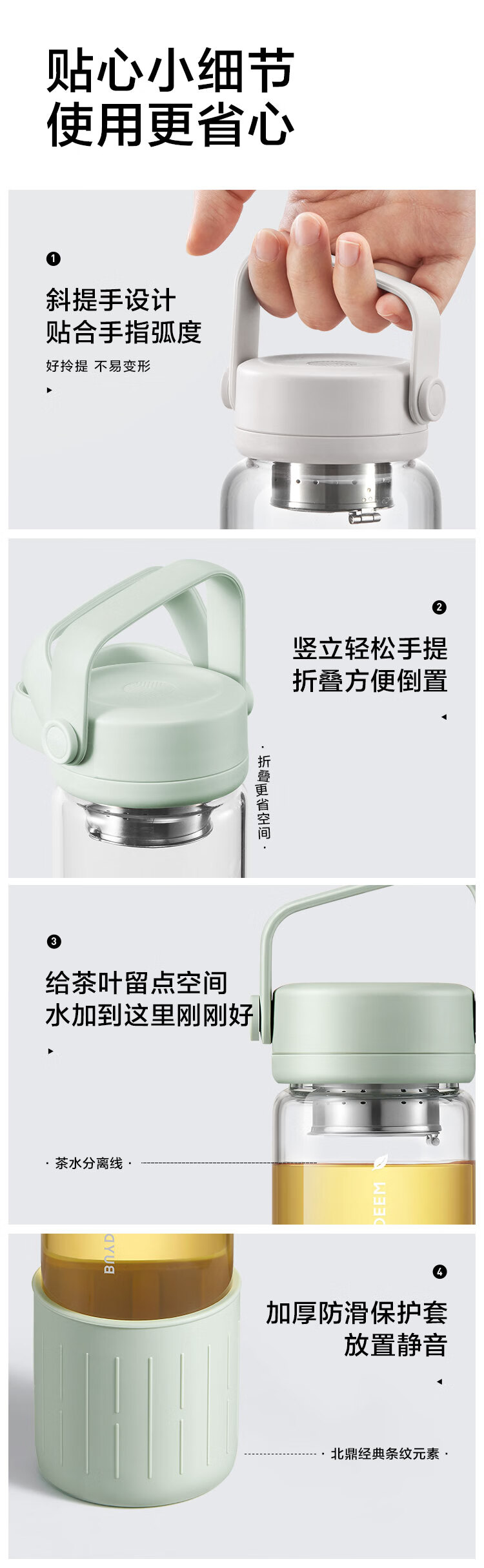 【专柜-北鼎】北鼎DG45/A1 泡茶随手杯 新硅胶套版 茶水分离水杯女高颜值