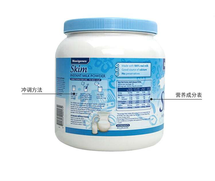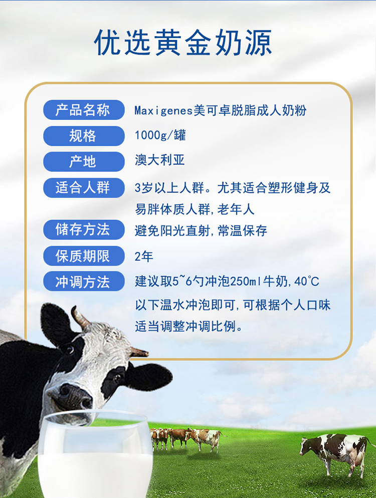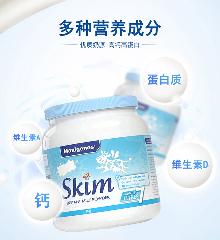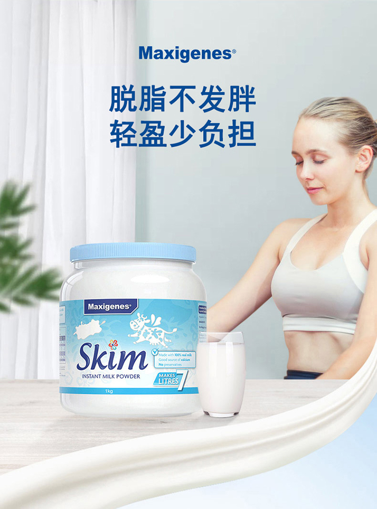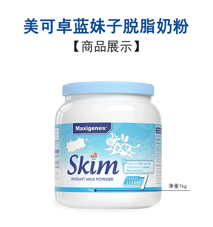 Maxigenes美可卓蓝胖子脱脂奶粉1kg【保税进口】