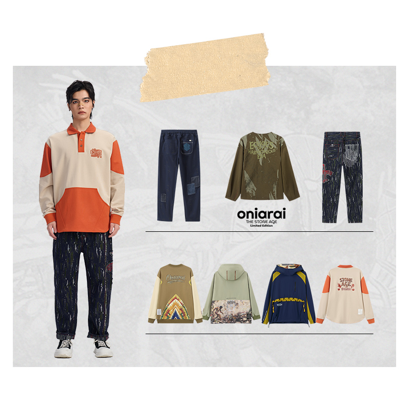 - ONIARAI品牌以鬼洗、地藏小王、日本蓝三个系列组成,鬼洗拥有独特的品牌文化图腾、夸张的图案设计、个性化的搭配,表达出潮人自我格调,制造话题、创造独特个性与生活态度。