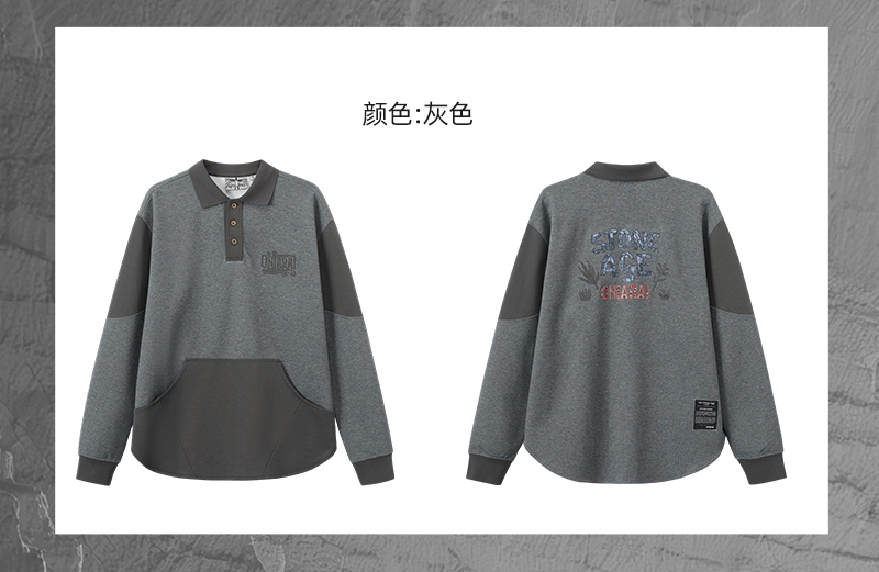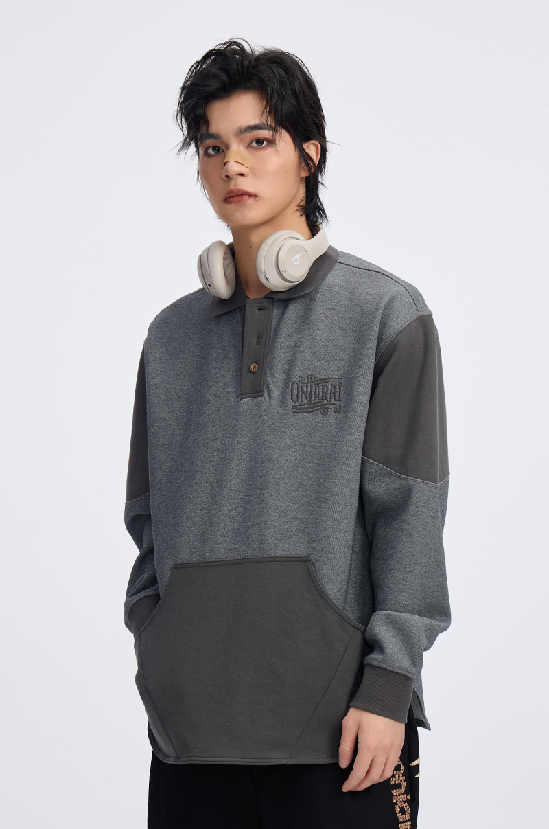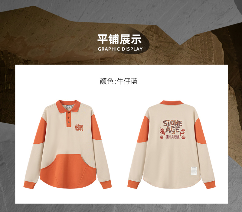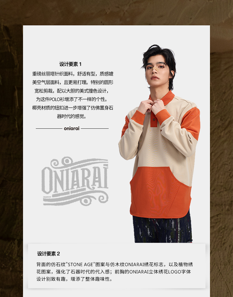 ONIARAI/鬼洗 石器时代自然环境长袖拼接宽松马球衫 A240011