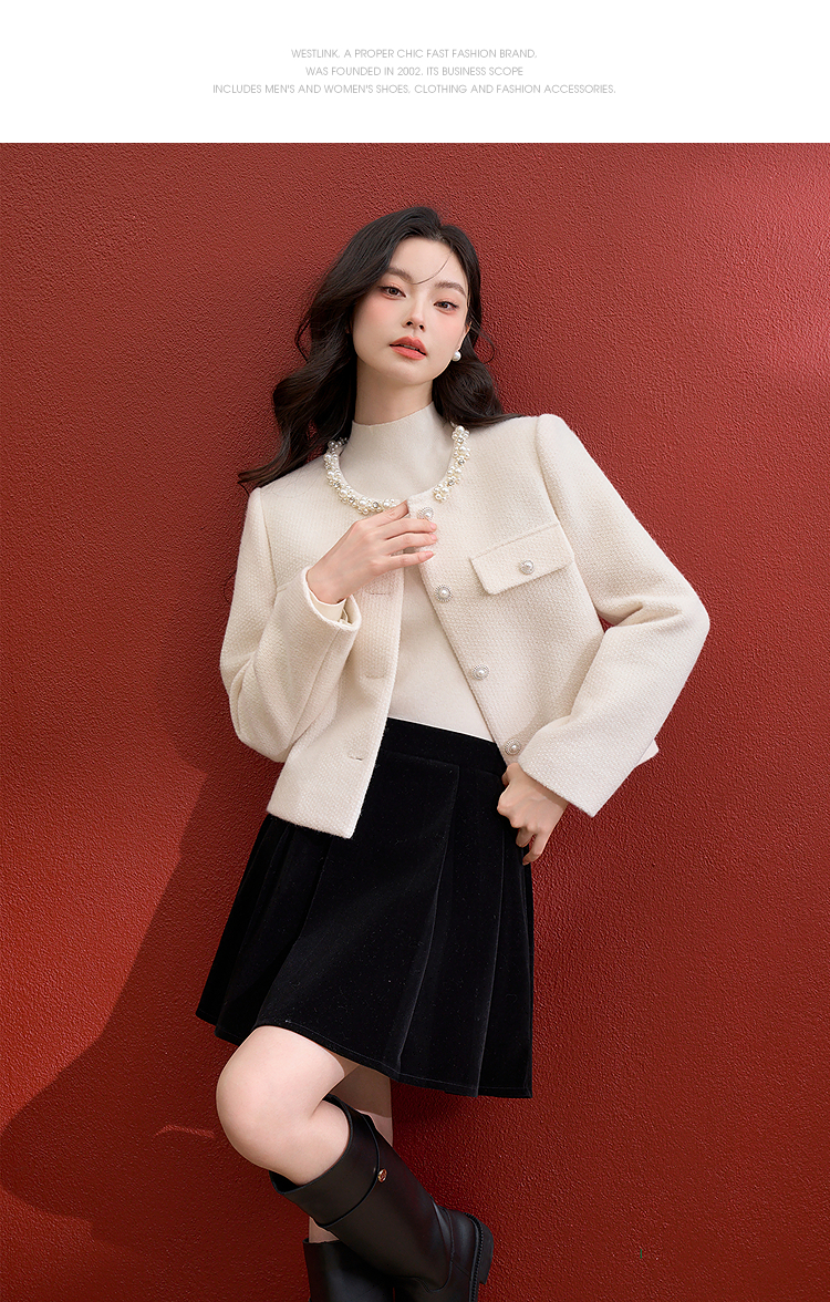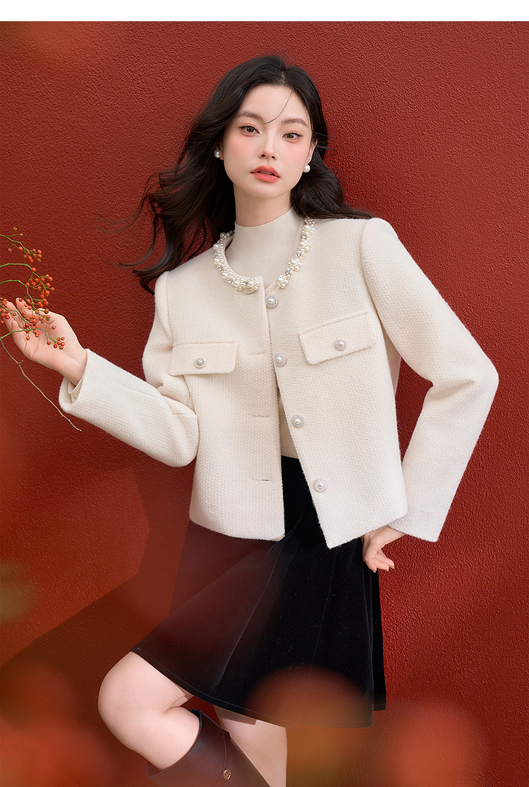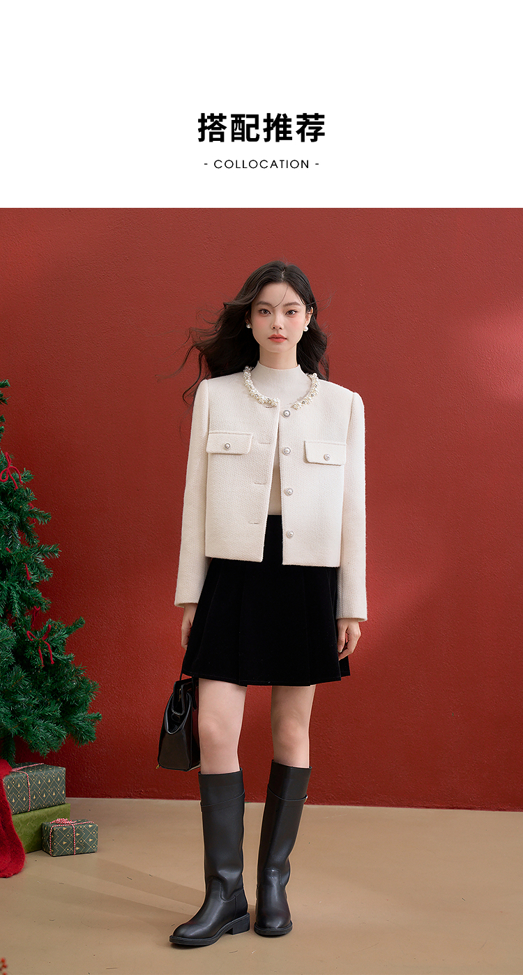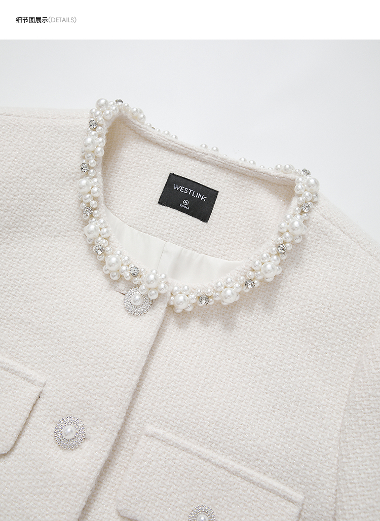 西遇法式珍珠领千金小香风外套女冬季新款正肩肌理感短款棉衣V4155414