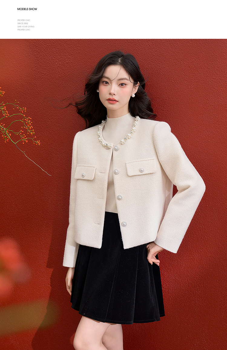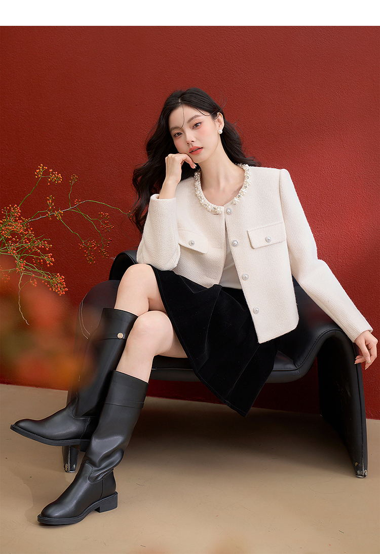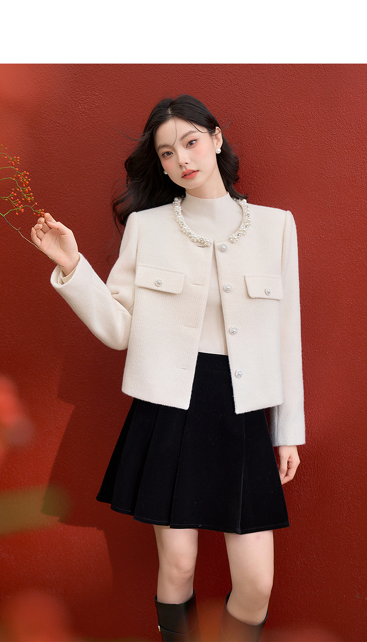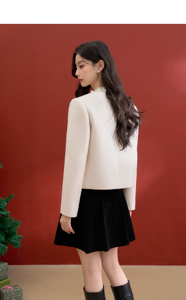 西遇法式珍珠领千金小香风外套女冬季新款正肩肌理感短款棉衣V4155414