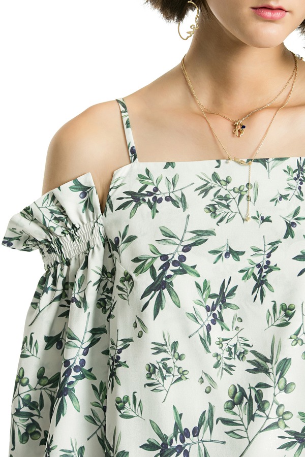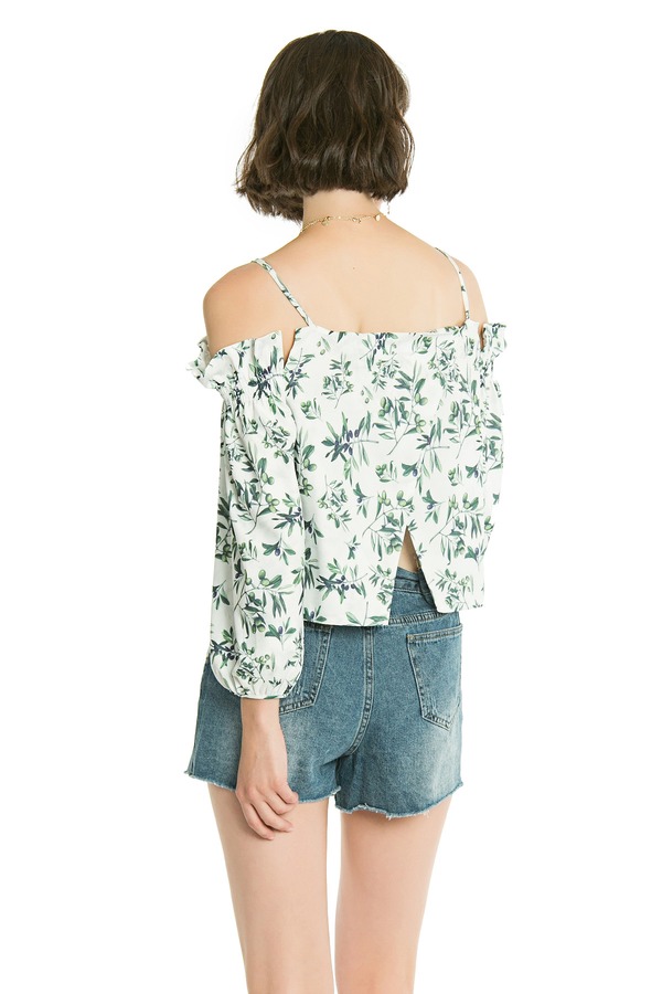 DONG DE XI 植物印花挖肩开衩上衣 2648