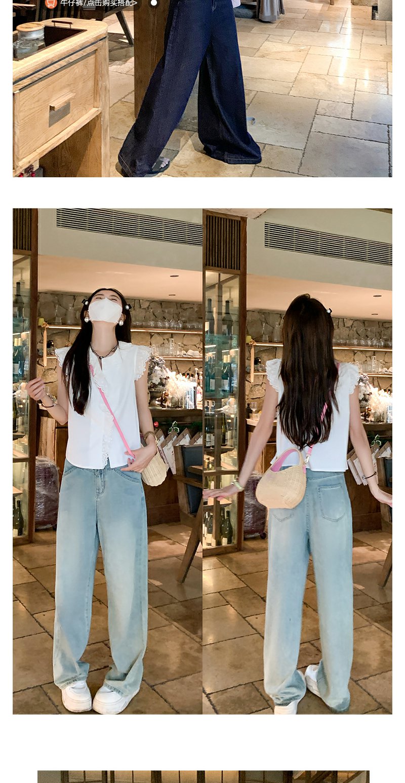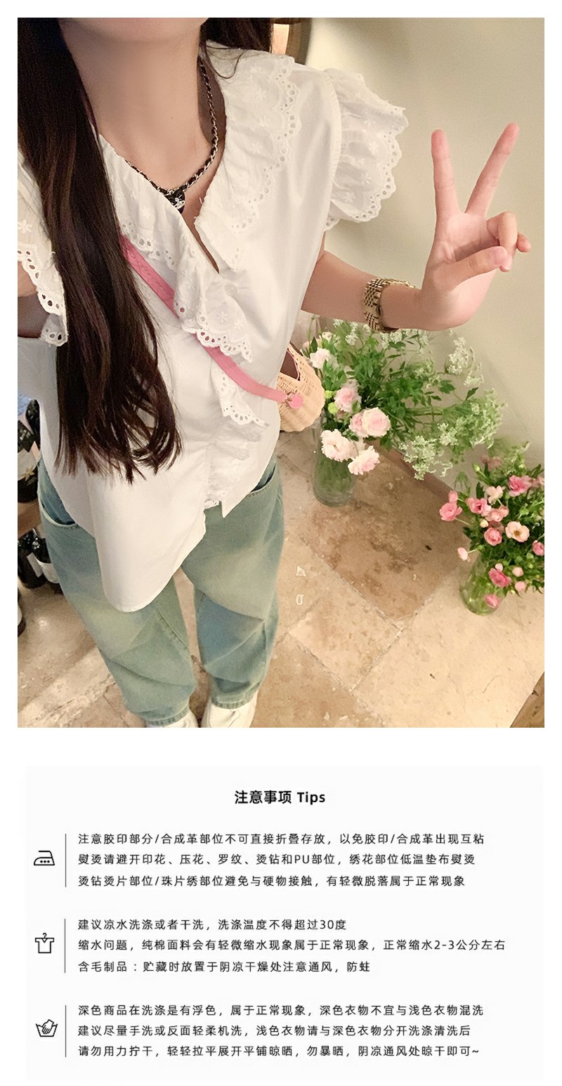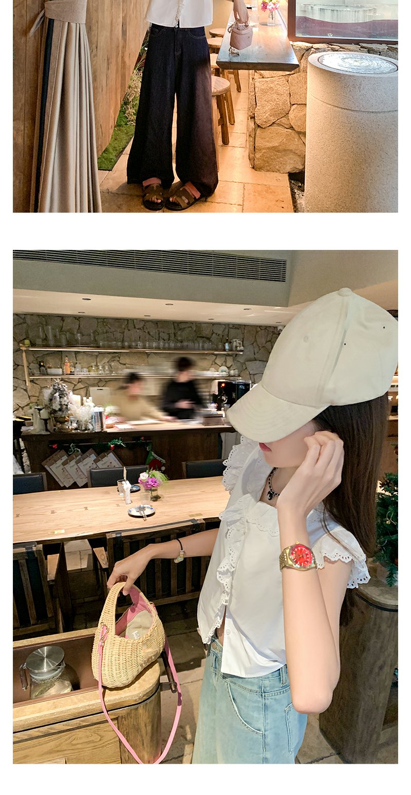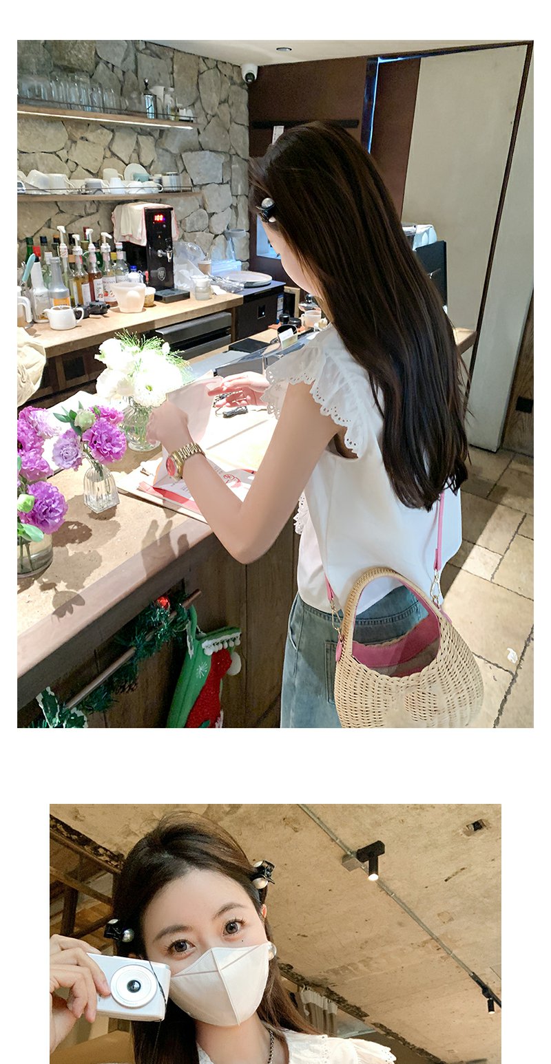 <曾小咸推荐>甜美白色圆领蕾丝边无袖衬衫