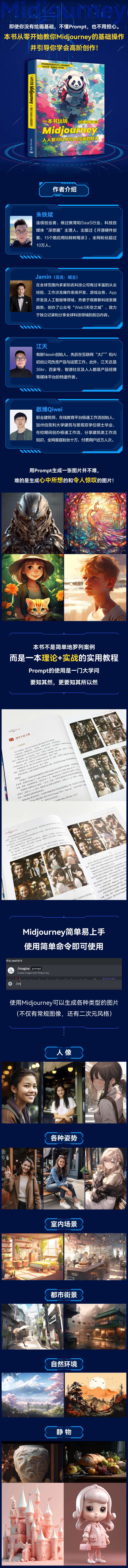 《一本书玩转Midjourney:人人都可以体验AI绘画的魅力》适用于Midjourney初学者、艺术爱好者和专业设计师,详细介绍了Prompt的用法,提供了丰富的案例,帮助他们提高创作技巧。