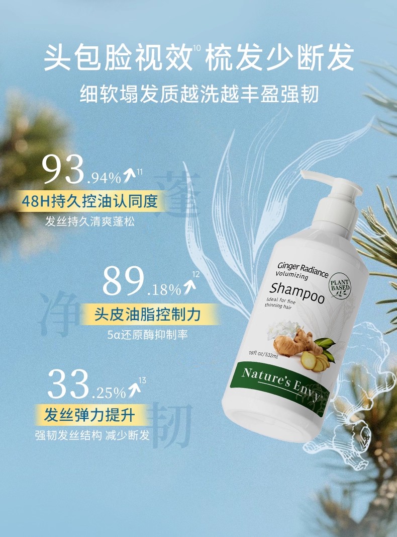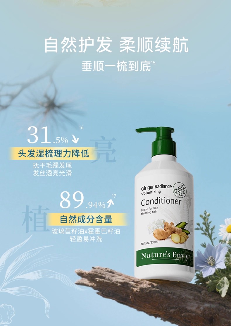 美国天然之扉野生姜无硅油洗发水l蓬松控油草本柔顺洗发水沐浴露532m