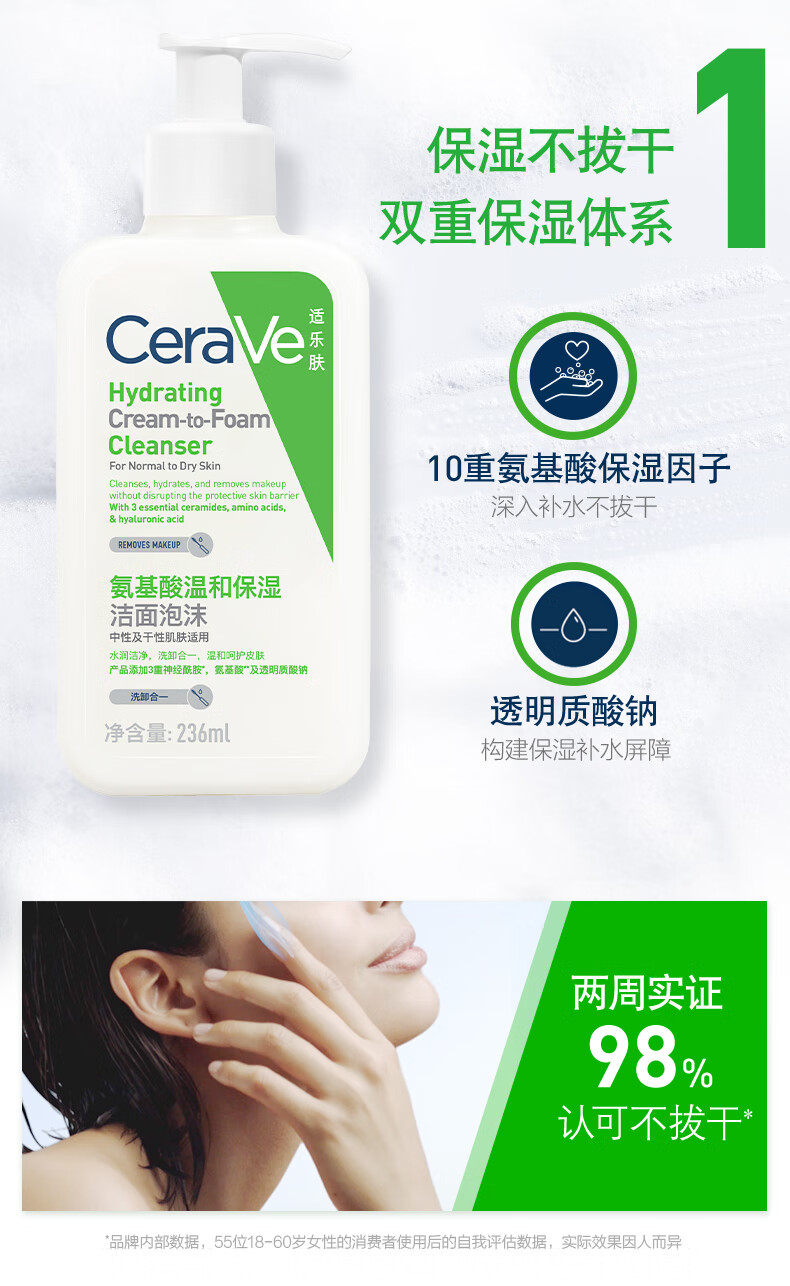 适乐肤(CeraVe)氨基酸修护保湿泡沫洁面乳236 ml 100015693106