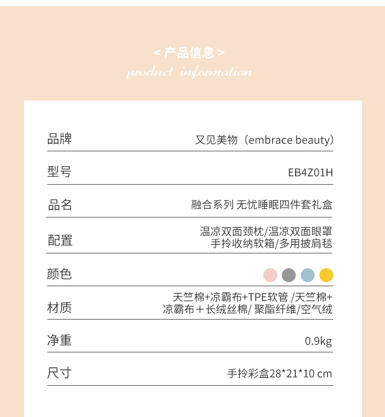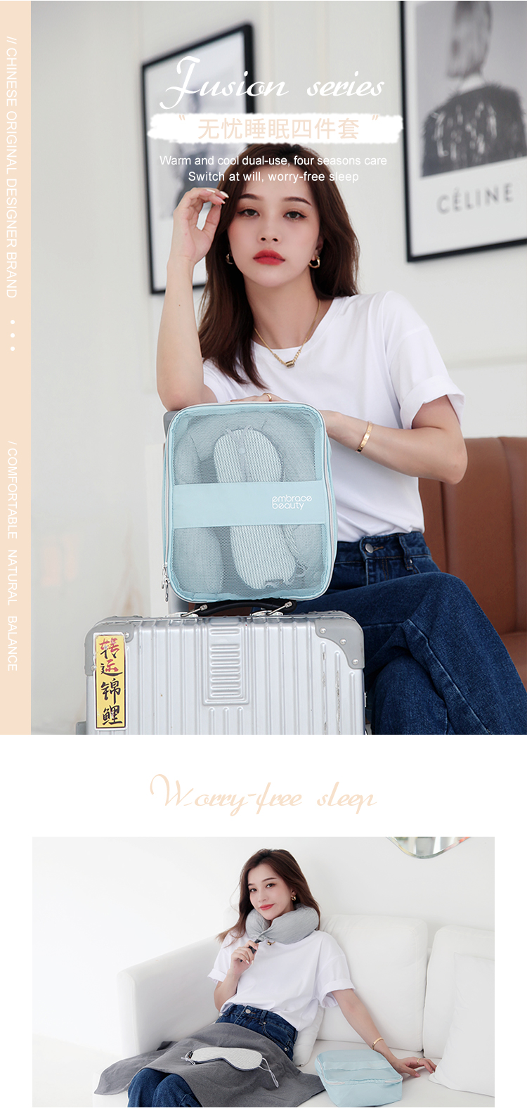 【自营】又见美物EB4Z01 旅行出差办公睡眠套装四件套温凉双面颈枕收纳包
