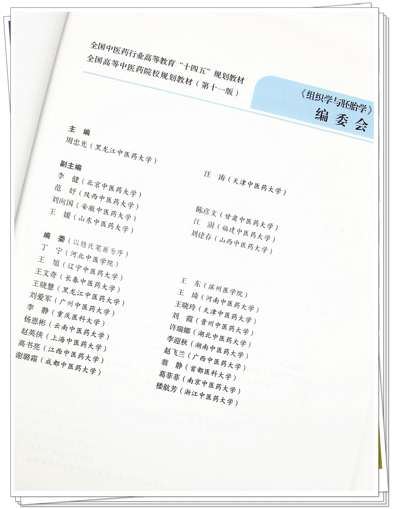 【出版社直销】组织学与胚胎学 周忠光 汪涛 著 新世纪第五5版 全国中医药行业高等教育十四五规划教材第十一版中国中医药出版社