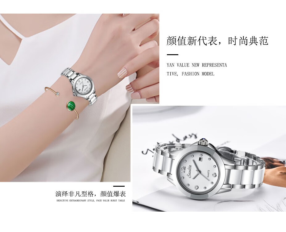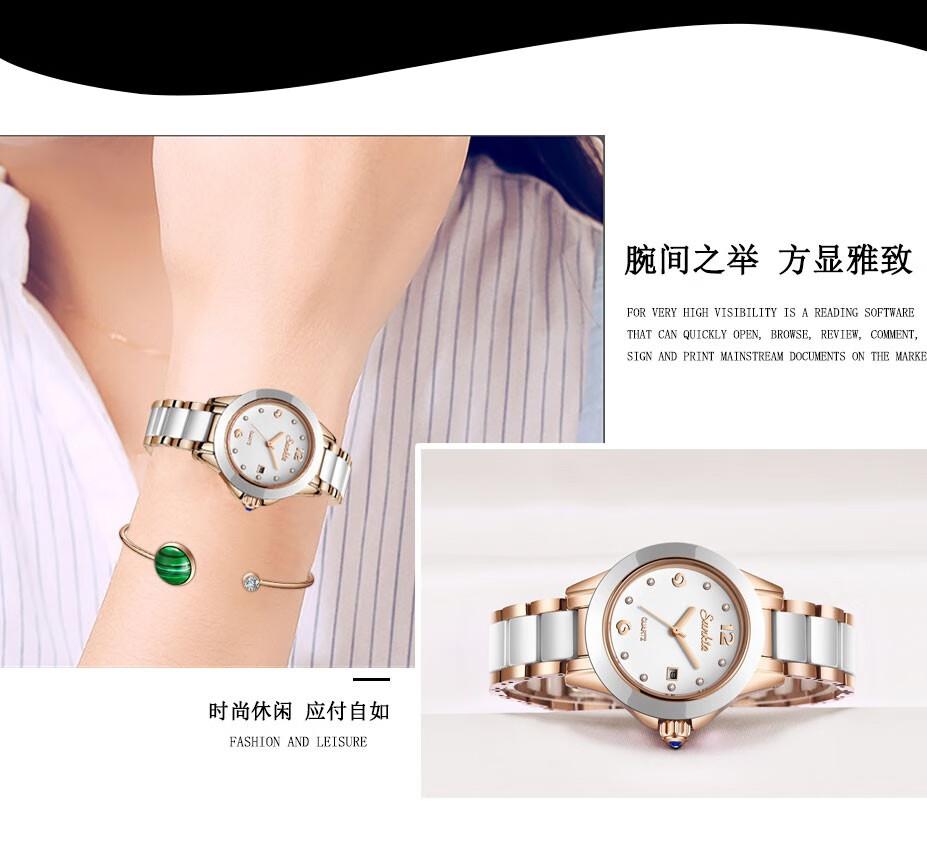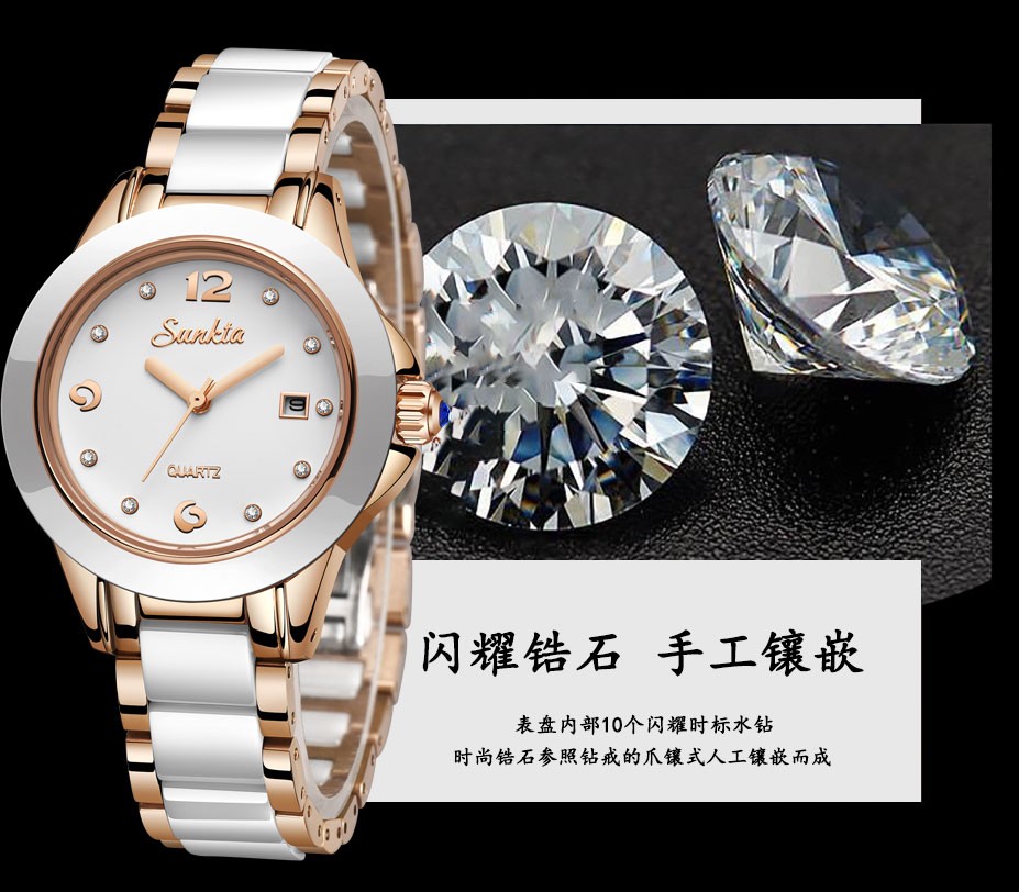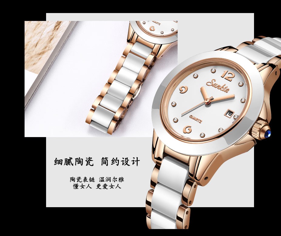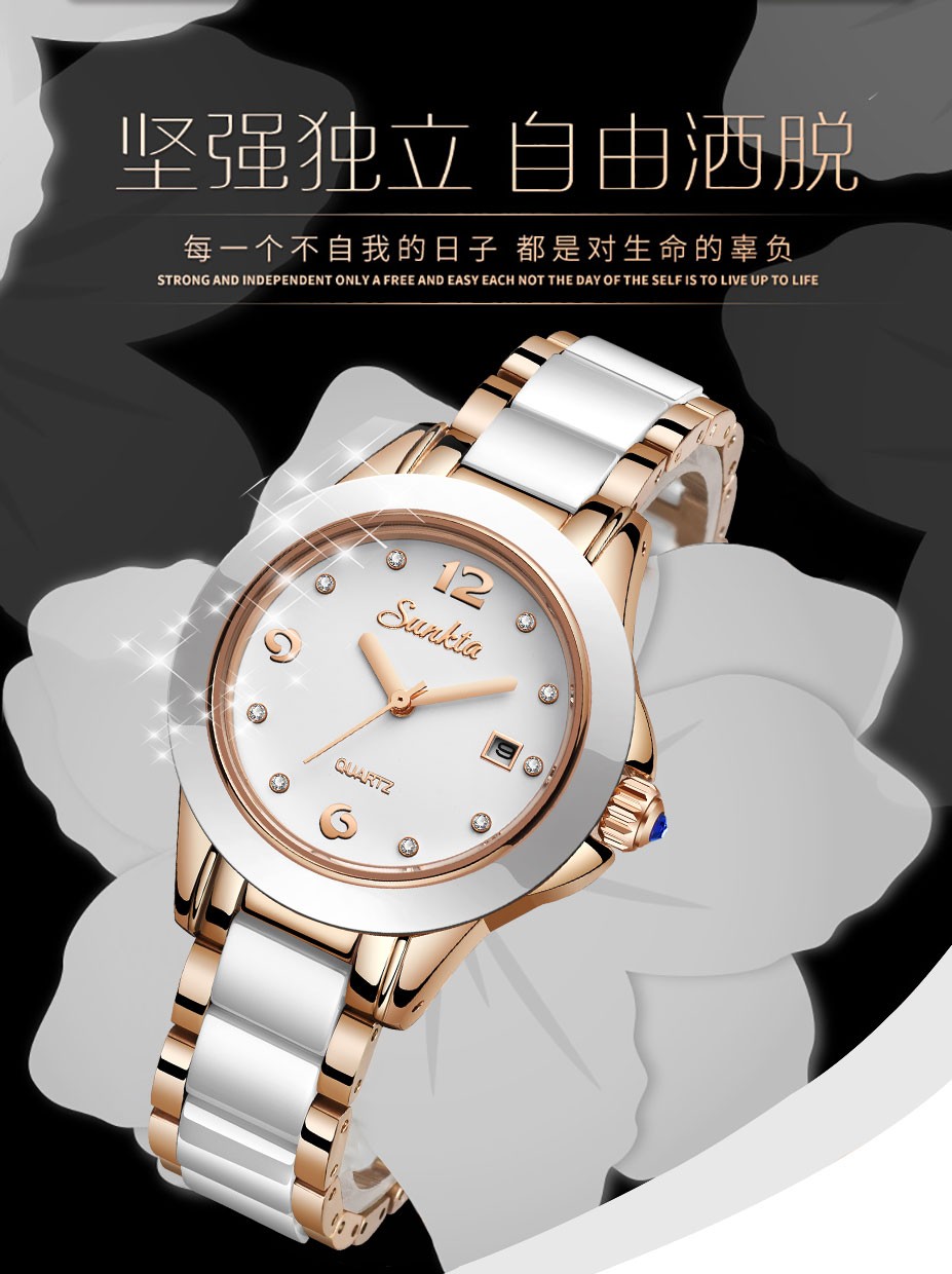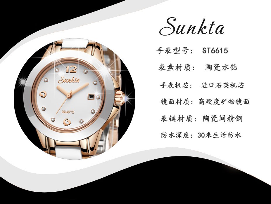 SUNKTA 高端陶瓷经典日历石英表ST6615