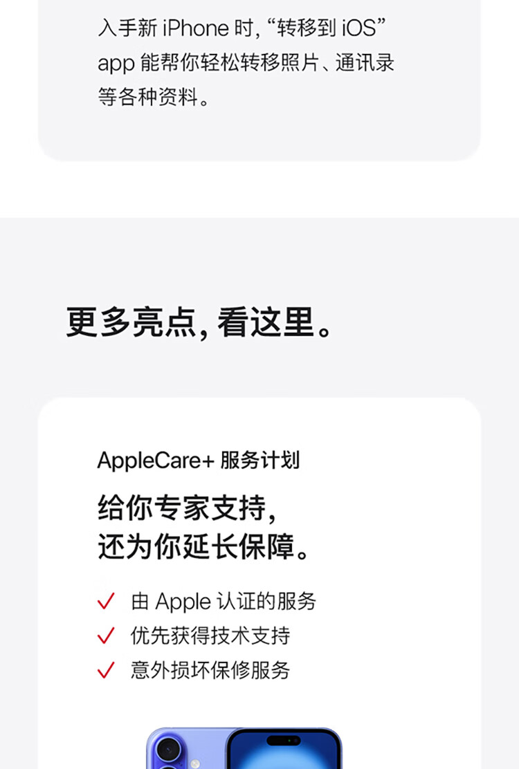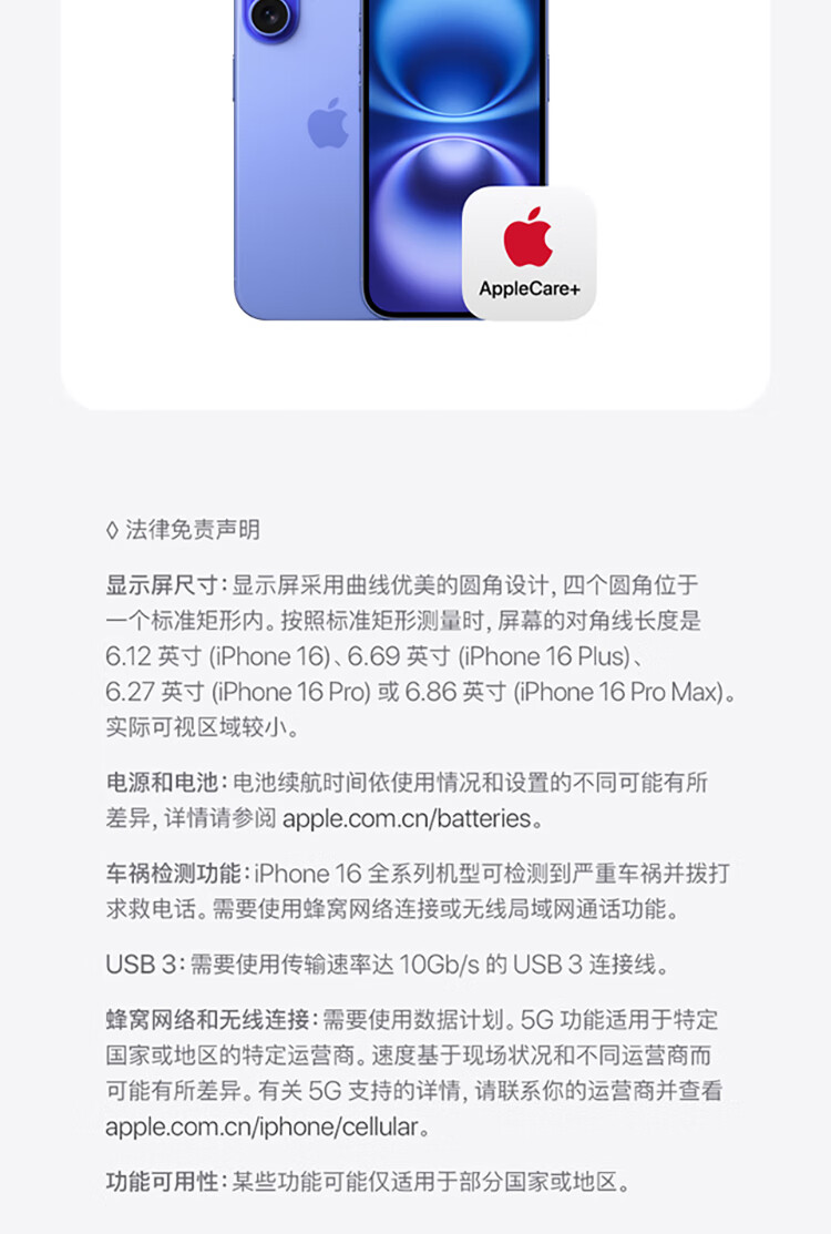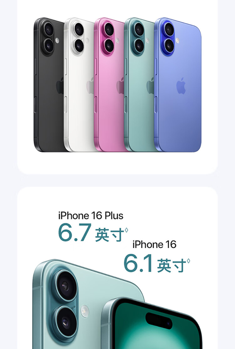 积分免费兑:Apple/苹果 iPhone 16(A3288)256GB 白色 支持移动联通电信5G 双卡双待手机