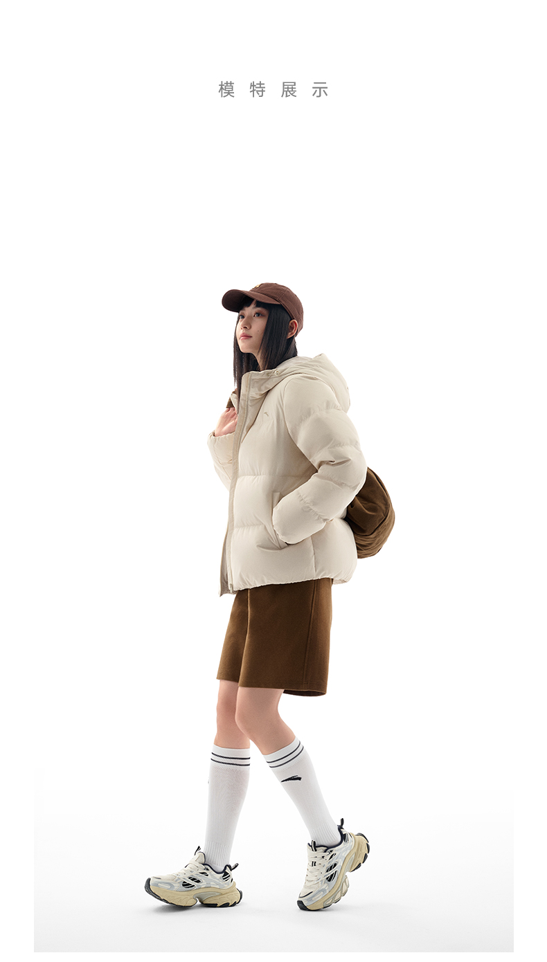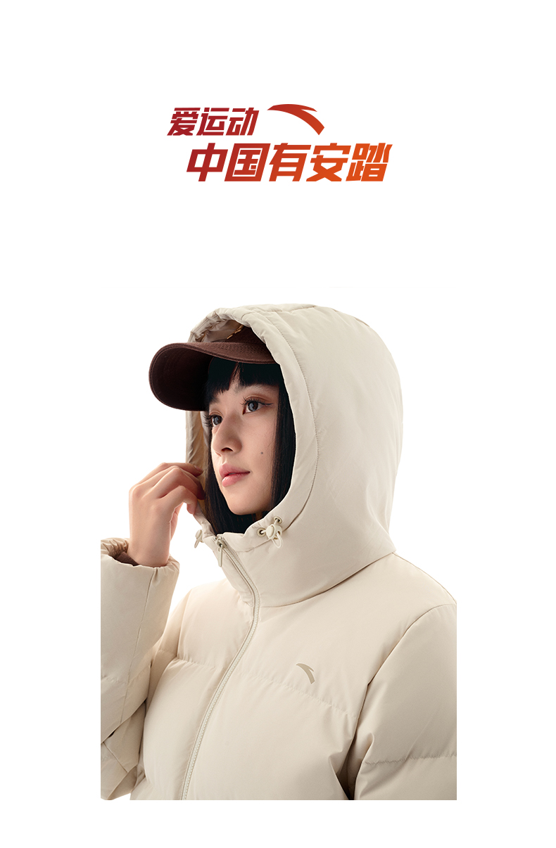 安踏防泼水羽绒服女士冬季新款宽松保暖连帽面包服外套162547911