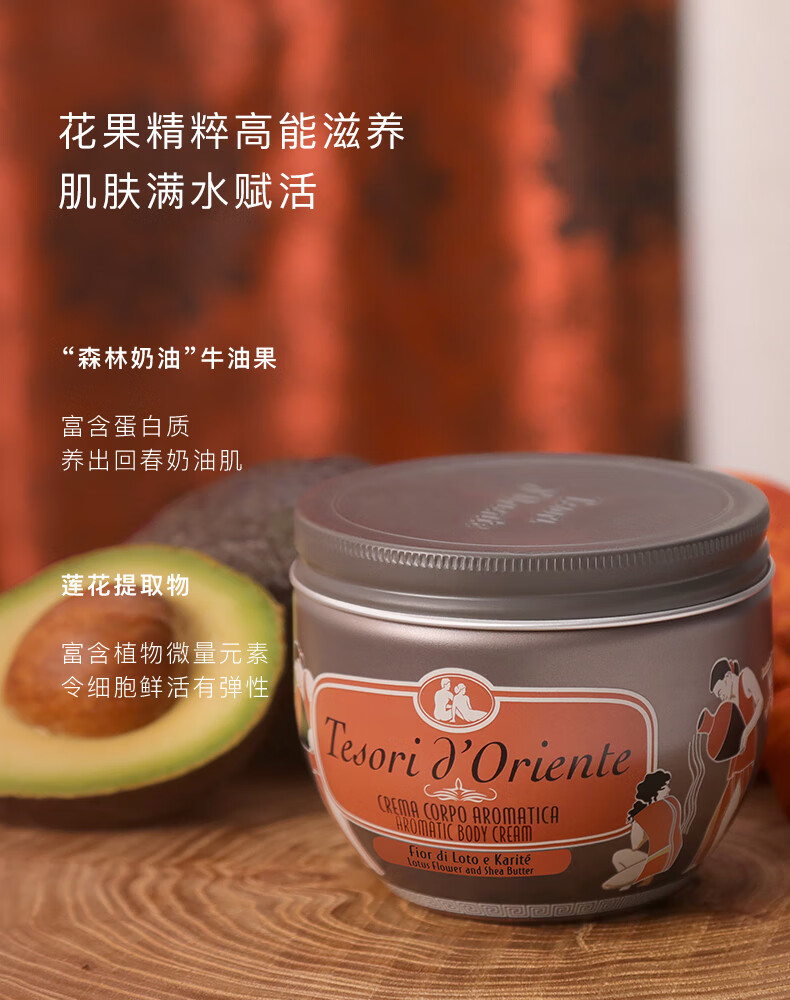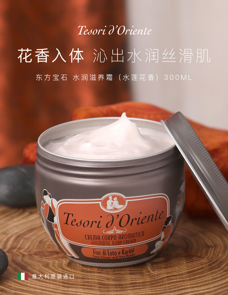 Tesori d'Oriente东方宝石保湿香氛身体霜身体乳300ml 水莲花香