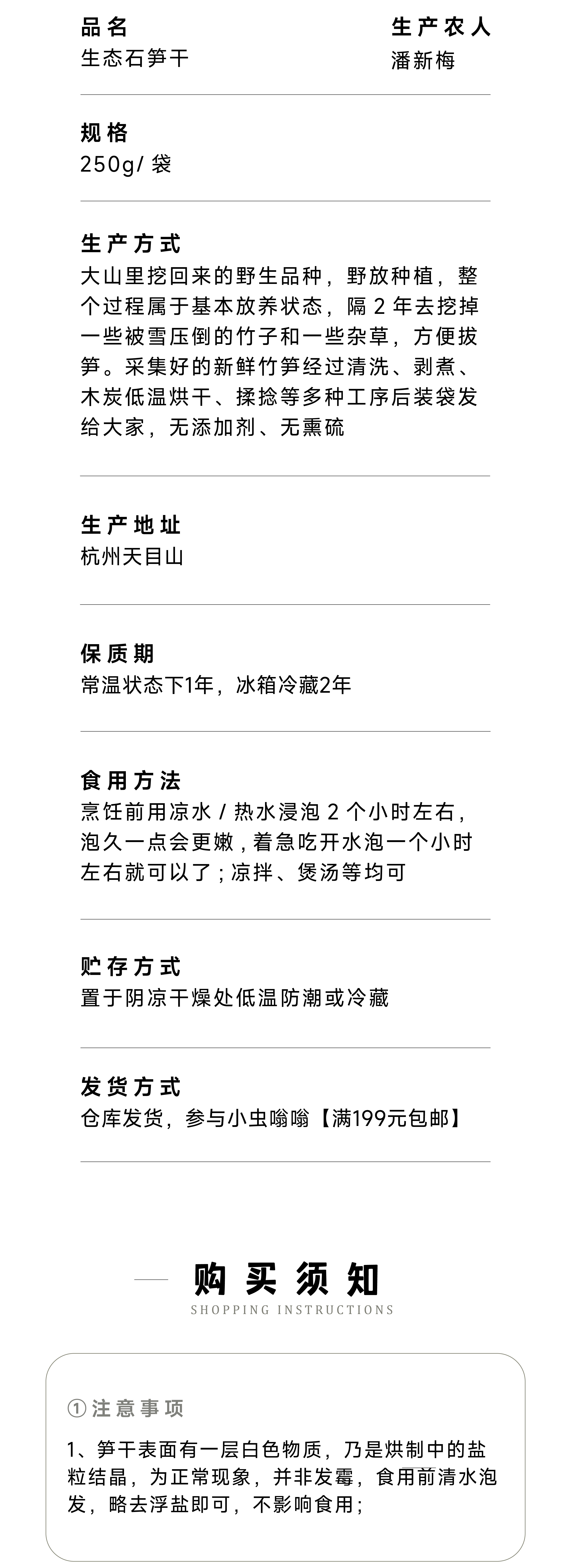 【积分享优惠】生态石笋干 250g/袋 | 合作农友生产,产自杭州天目山,生产者:潘新梅 &【公平贸易农人定价】