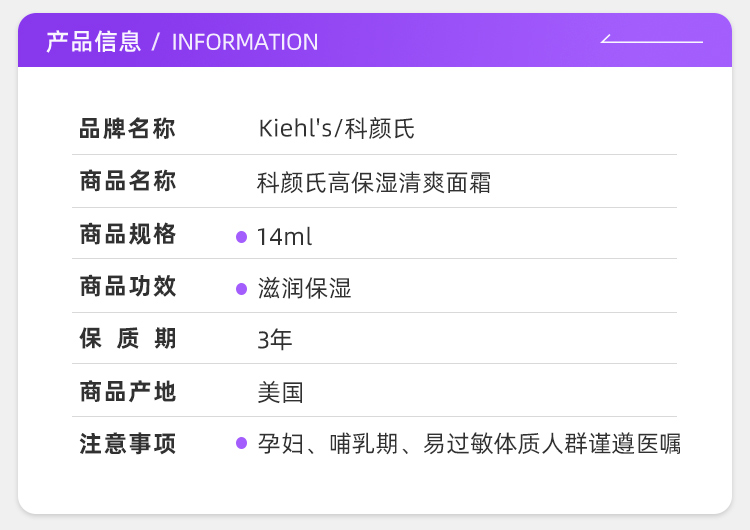 【礼想心动】【小样】科颜氏 高保湿 清爽面霜 14ml
