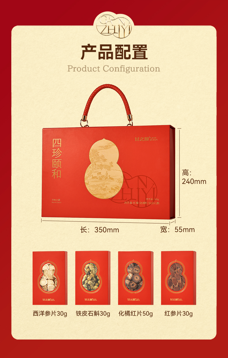 甘之颐 四珍颐和礼盒 140g/盒 西洋参片红参片化橘红片铁皮石斛礼盒 典藏四珍萃 颐养天人和