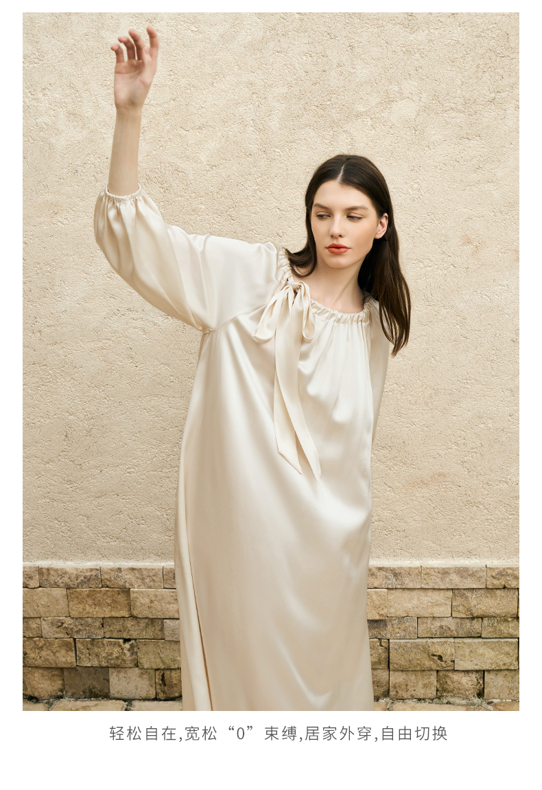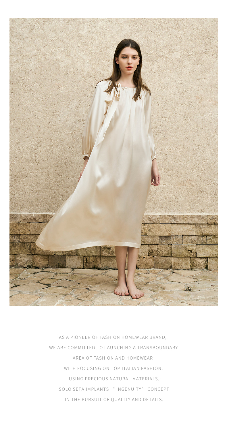 Solo seta22姆米重磅真丝连衣睡裙女款桑蚕丝家居服2025纯色