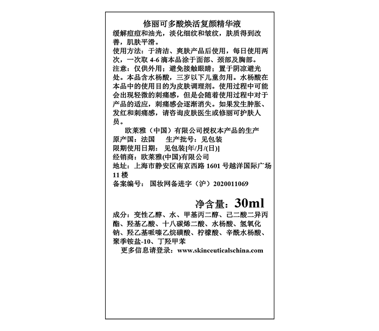 修丽可 五酸精华30ml 护肤品水杨酸祛痘控油焕肤情人节生日礼物送女友 心选到家
